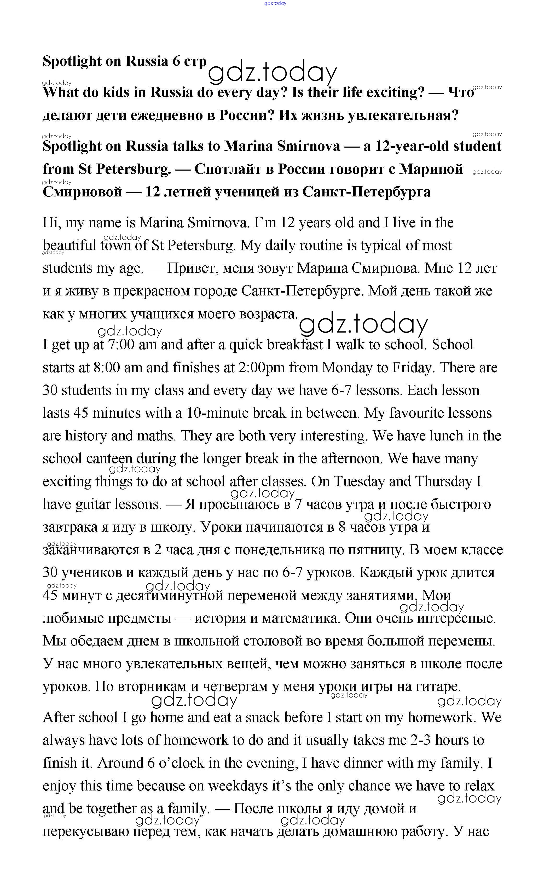Ответы к Решение к Spotlight on Russia. Страницы 6 Учебнику по Английскому языку для 6 класса Ваулина, Дули Просвещение Spotlight 2017