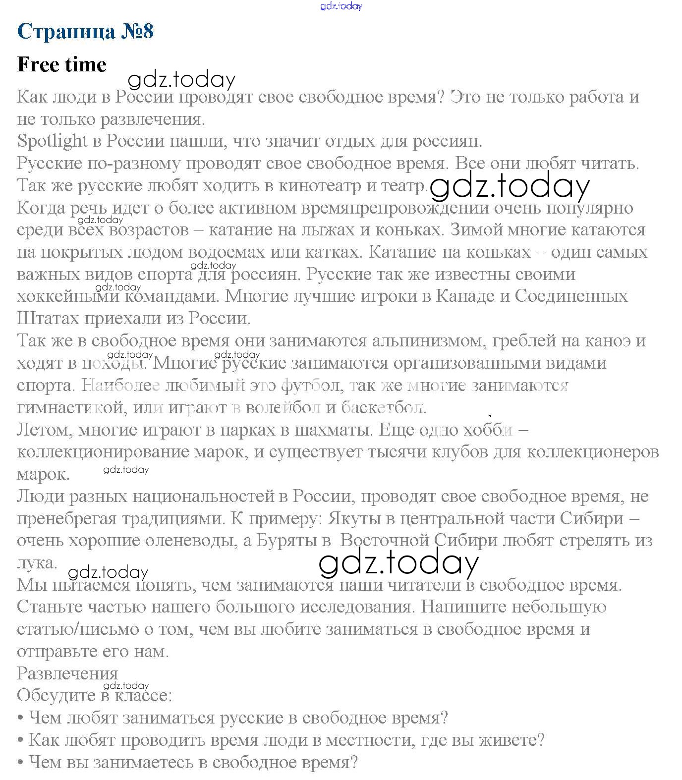 Ответы к Решение к Spotlight on Russia. Страницы 8 Учебнику по Английскому языку для 6 класса Ваулина, Дули Просвещение Spotlight 2017
