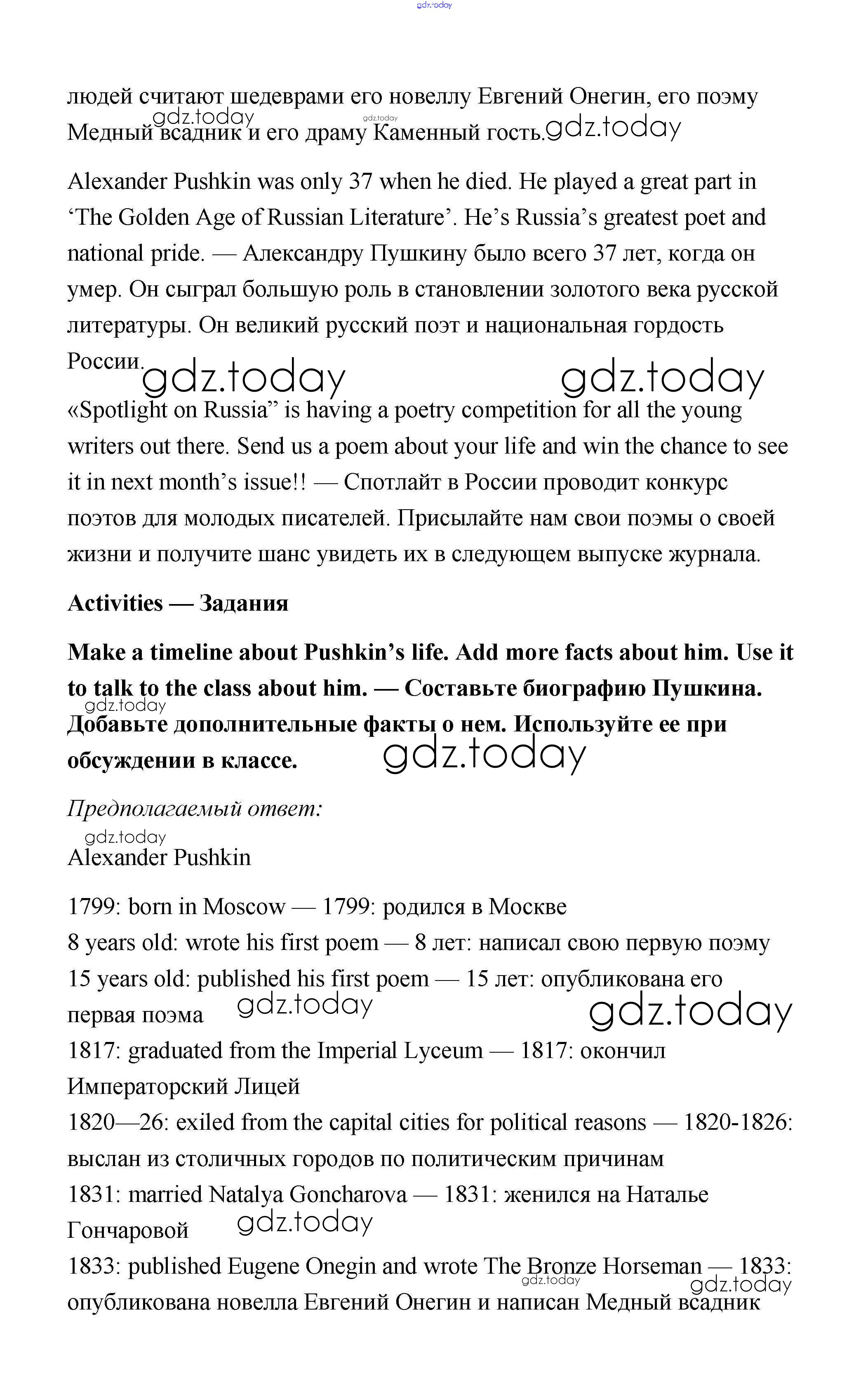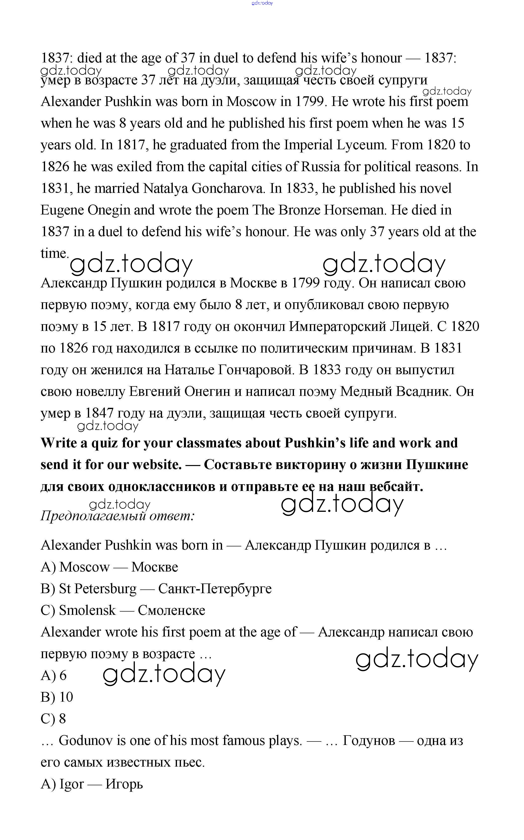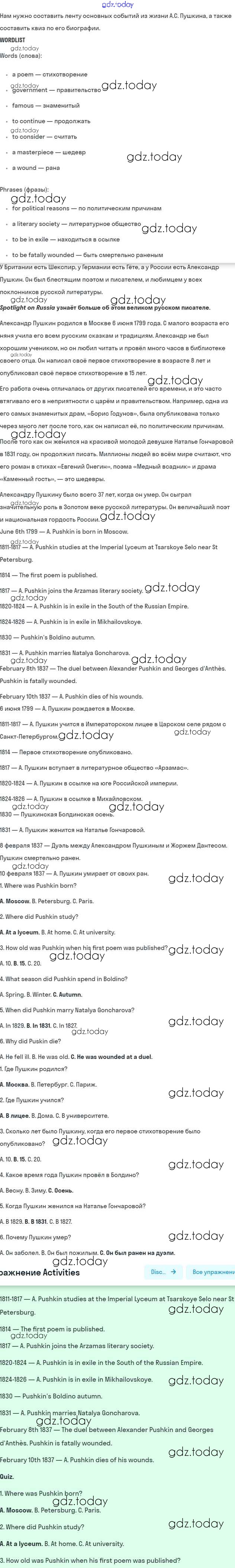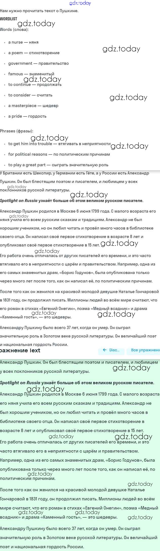 На страницах сайта gdz.today вы найдете учебный и вспомогательный материал, направленный на улучшения знаний школьной программы. ГДЗ - онлайн мир знаний Решение к Spotlight on Russia. Страницы 9 Учебнику по Английскому языку для 6 класса Ваулина, Дули Просвещение Spotlight 2017