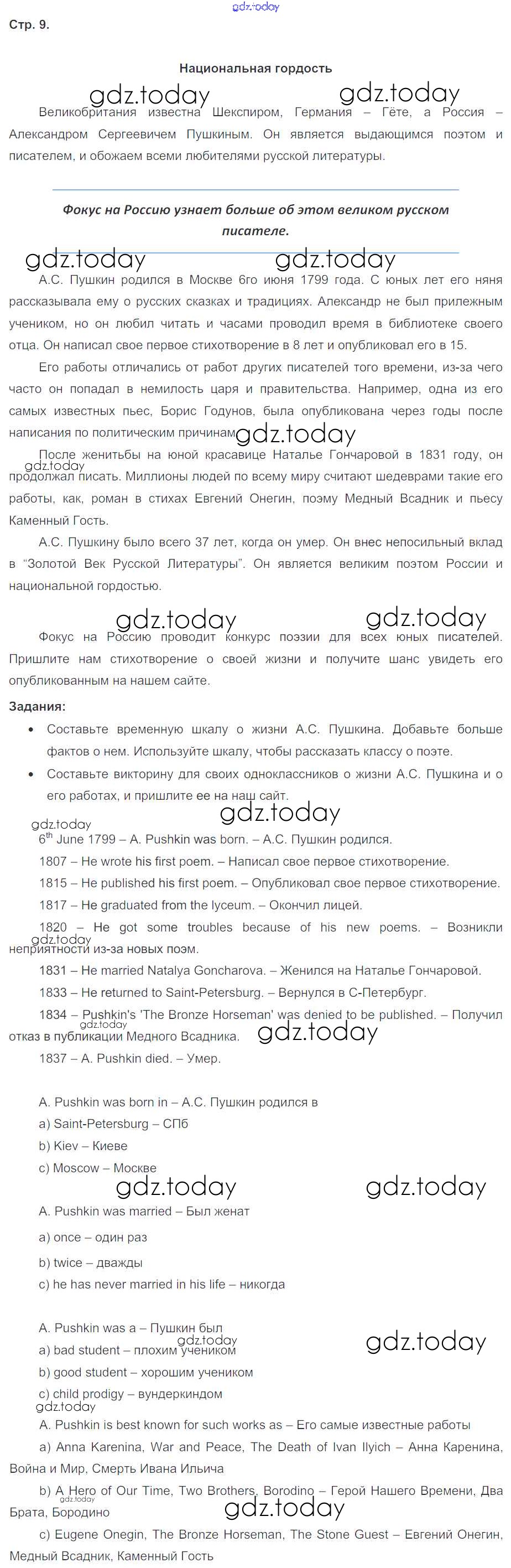 Ответы к Решение к Spotlight on Russia. Страницы 9 Учебнику по Английскому языку для 6 класса Ваулина, Дули Просвещение Spotlight 2017