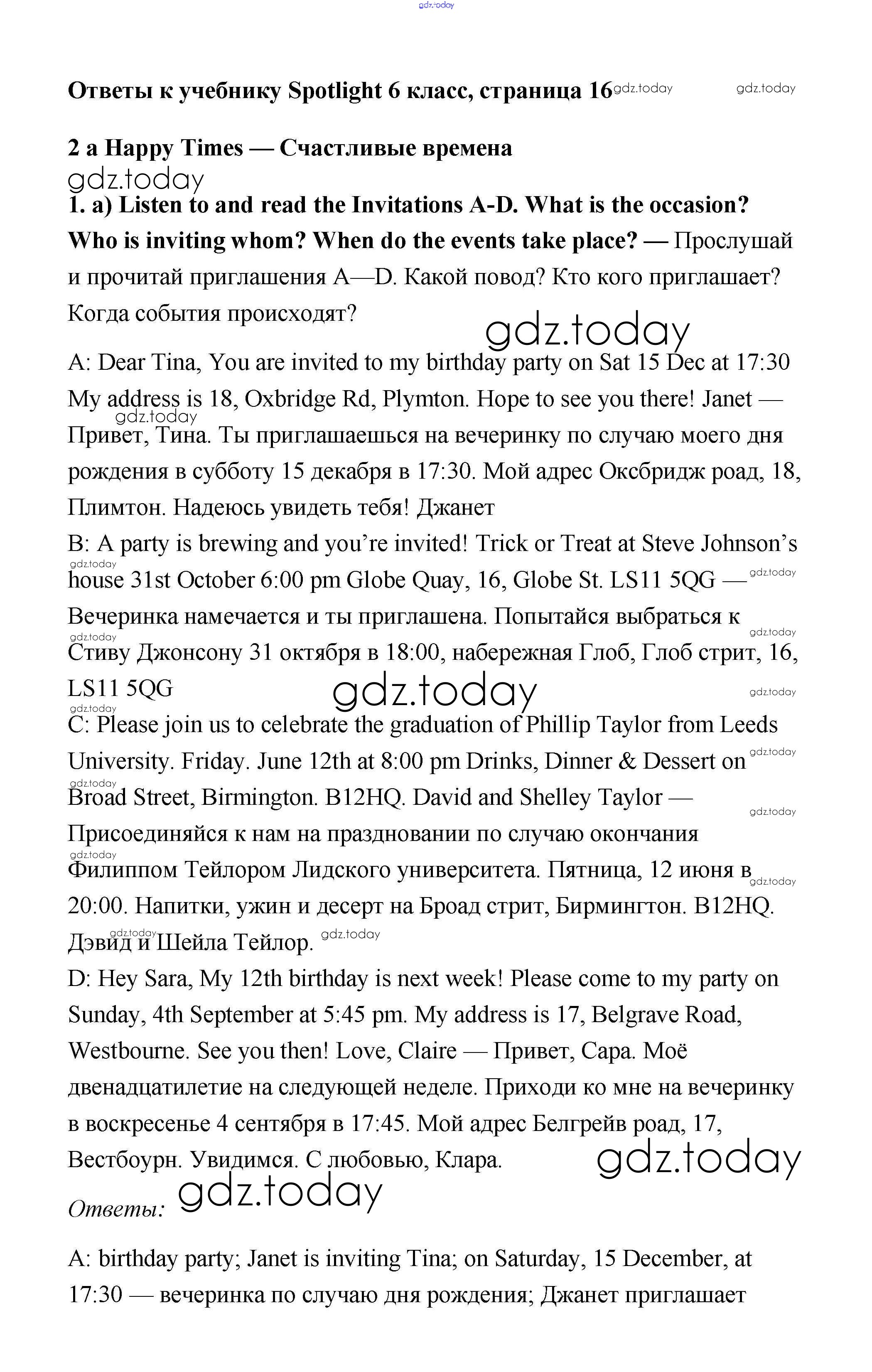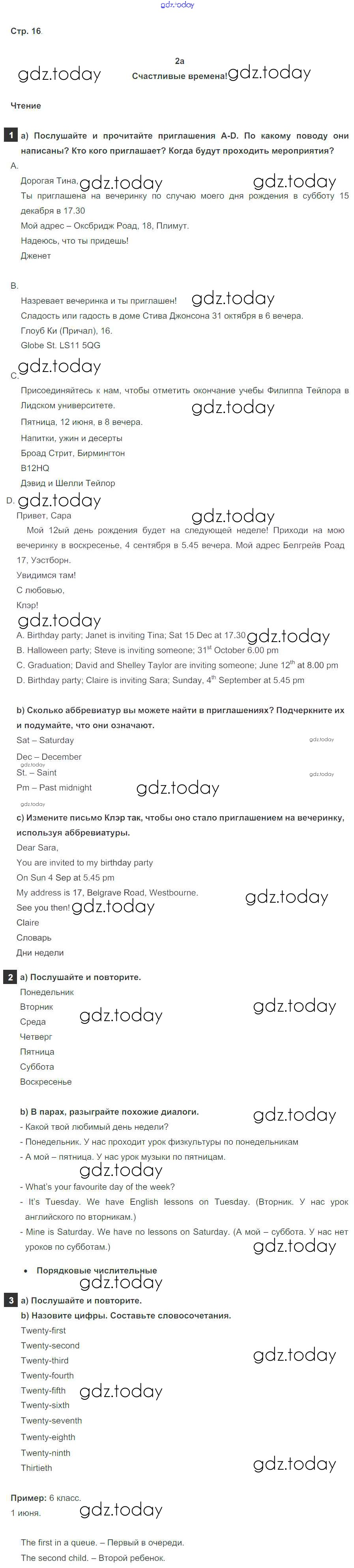 Ответы к Решение к Module 2. Here we are! Страницы 16 Учебнику по Английскому языку для 6 класса Ваулина, Дули Просвещение Spotlight 2017