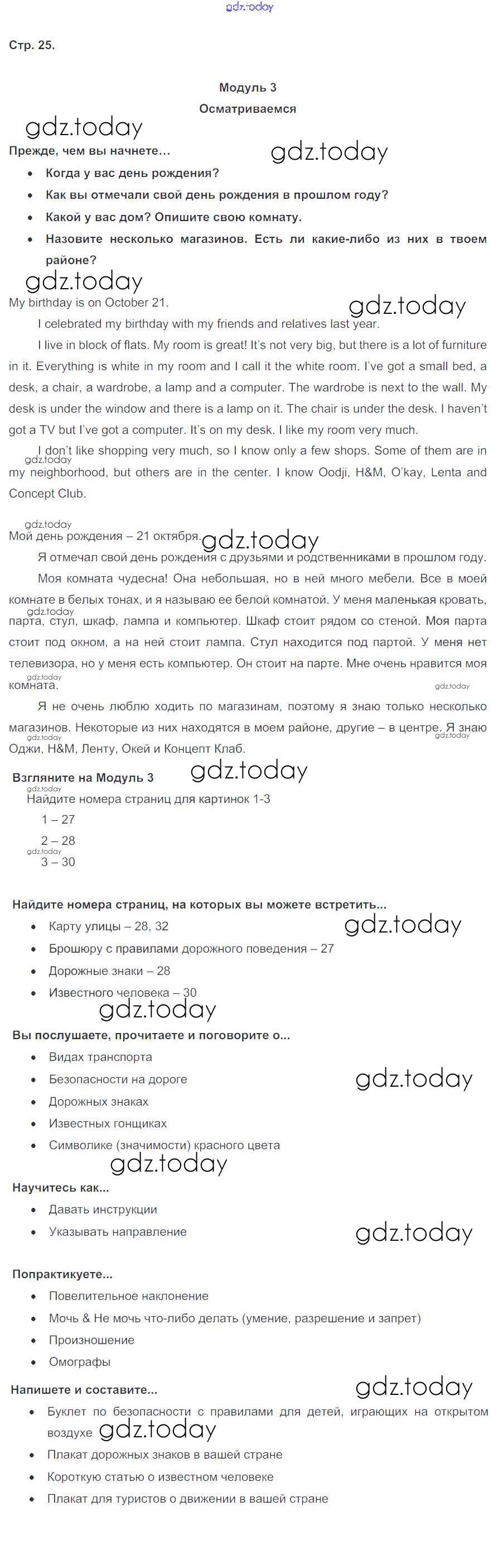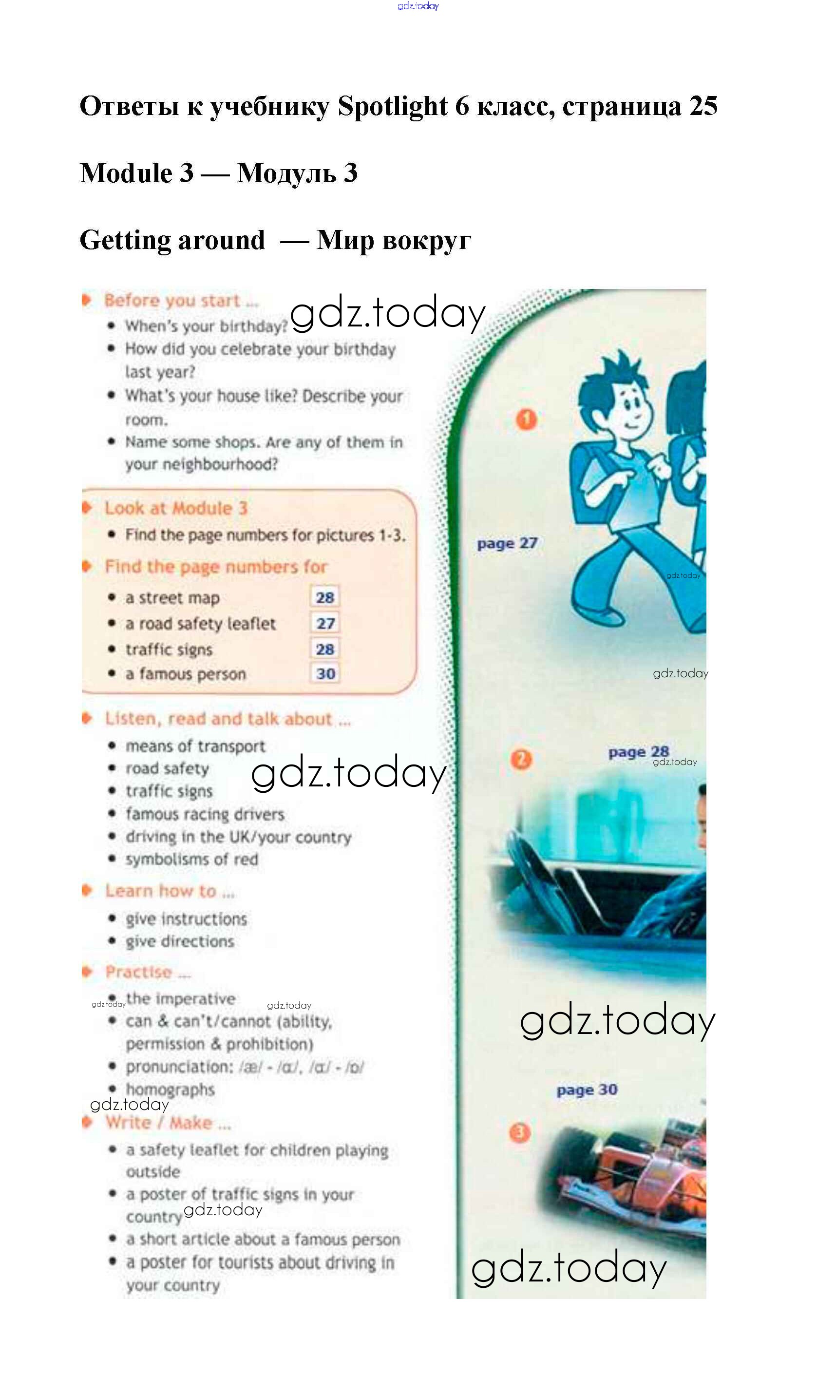 Ответы к Решение к Module 3. Getting around. Страницы 25 Учебнику по Английскому языку для 6 класса Ваулина, Дули Просвещение Spotlight 2017