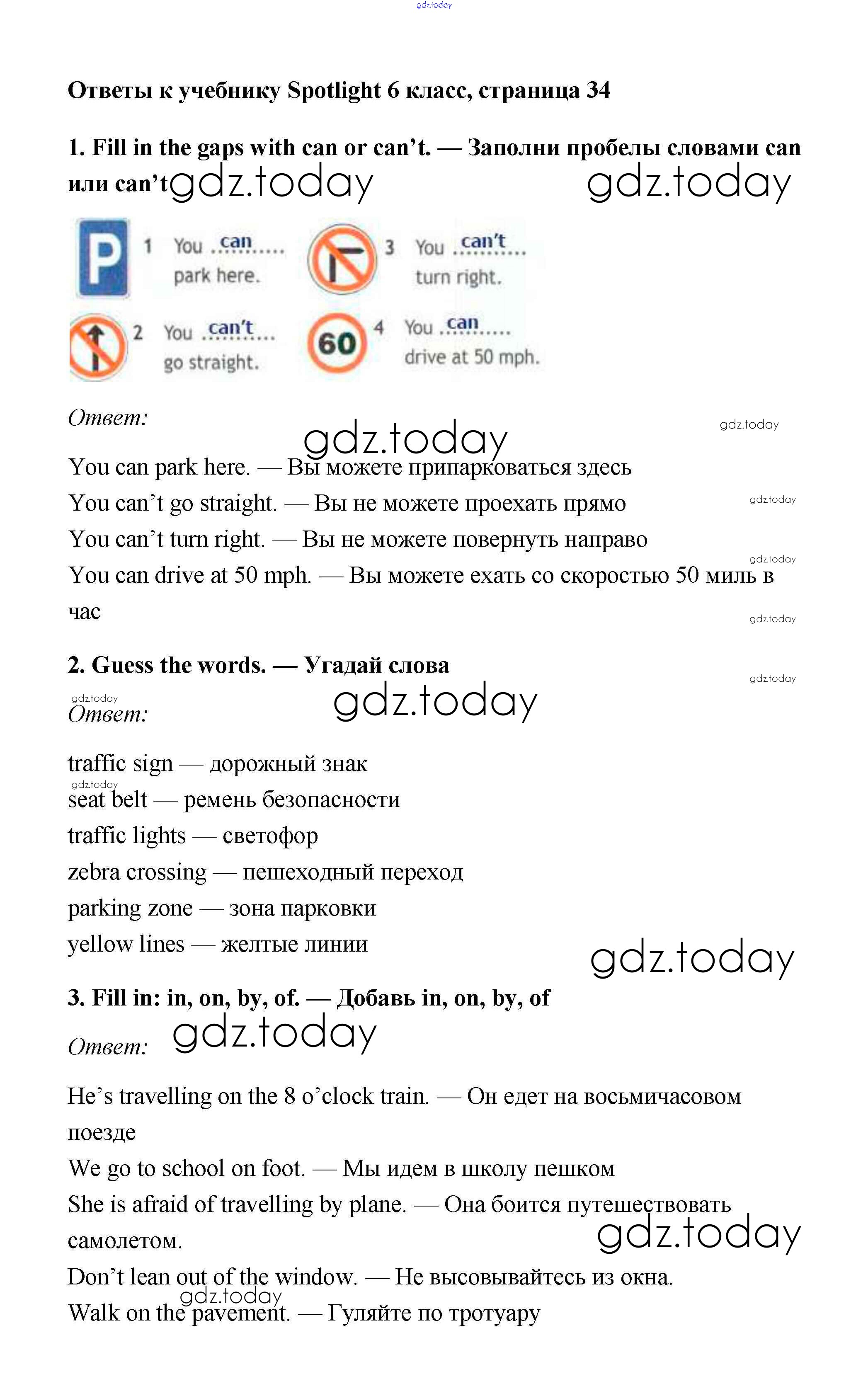 Ответы к Решение к Module 3. Getting around. Страницы 34 Учебнику по Английскому языку для 6 класса Ваулина, Дули Просвещение Spotlight 2017