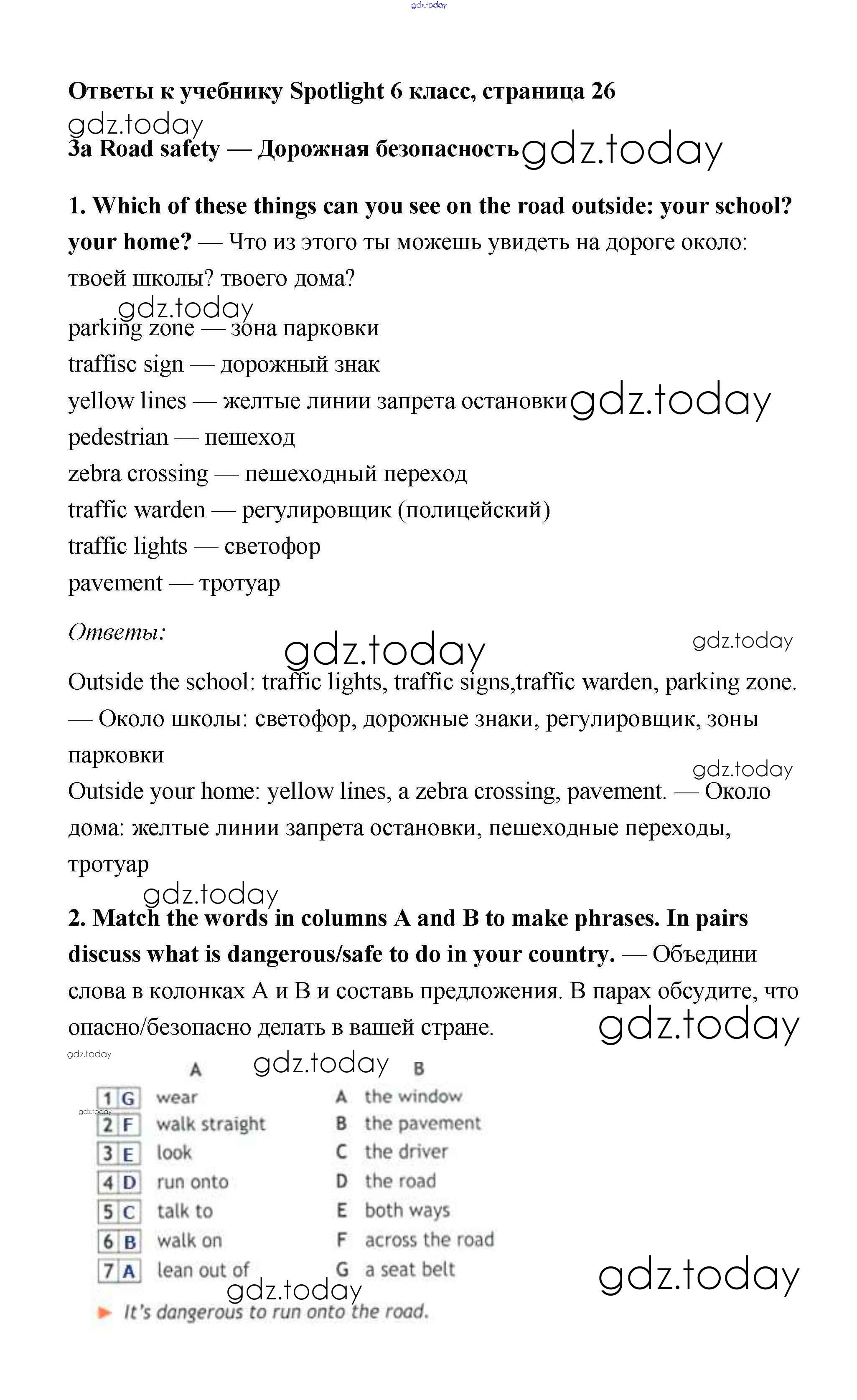 Ответы к Решение к Module 3. Getting around. Страницы 26 Учебнику по Английскому языку для 6 класса Ваулина, Дули Просвещение Spotlight 2017