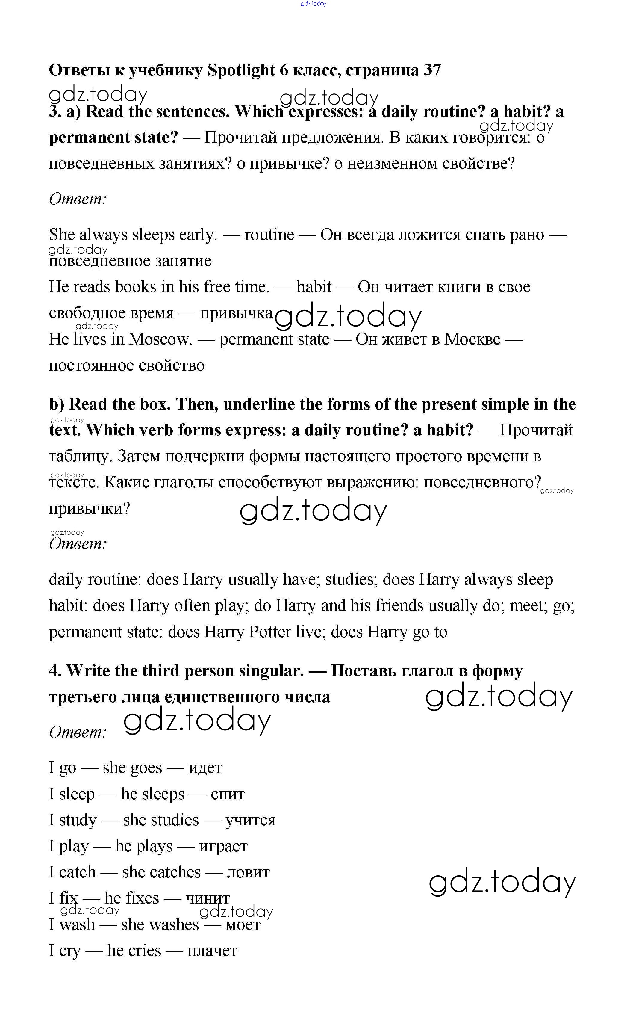 Ответы к Решение к Module 4. Day after day. Страницы 37 Учебнику по Английскому языку для 6 класса Ваулина, Дули Просвещение Spotlight 2017