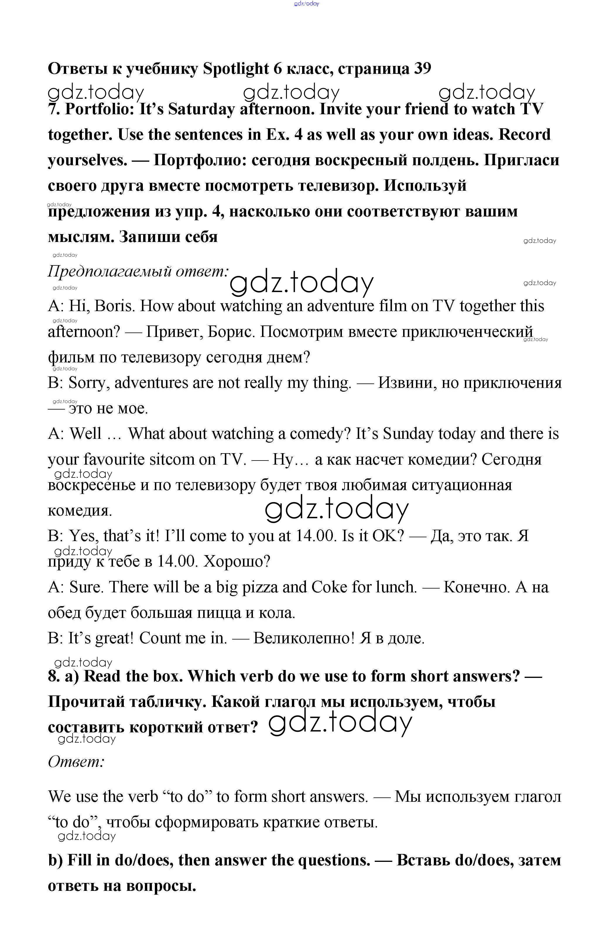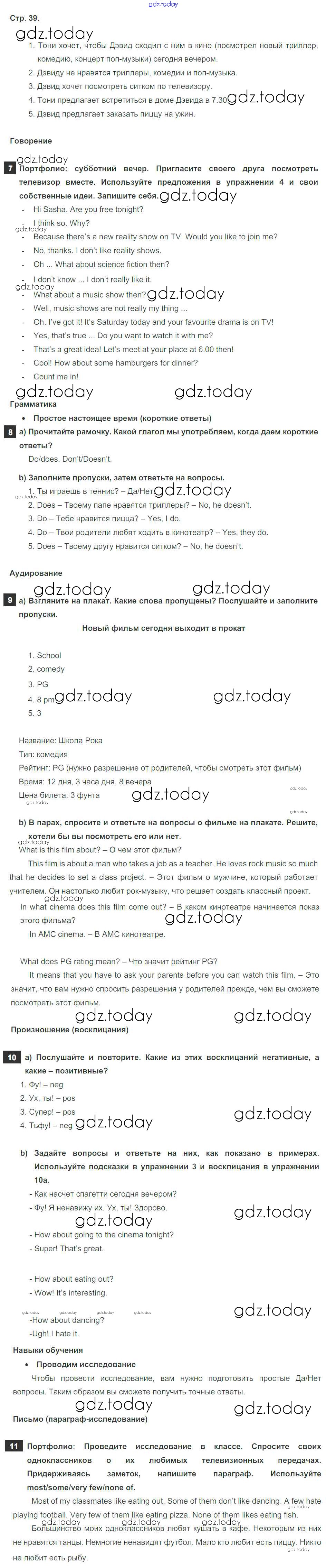 Ответы к Решение к Module 4. Day after day. Страницы 39 Учебнику по Английскому языку для 6 класса Ваулина, Дули Просвещение Spotlight 2017