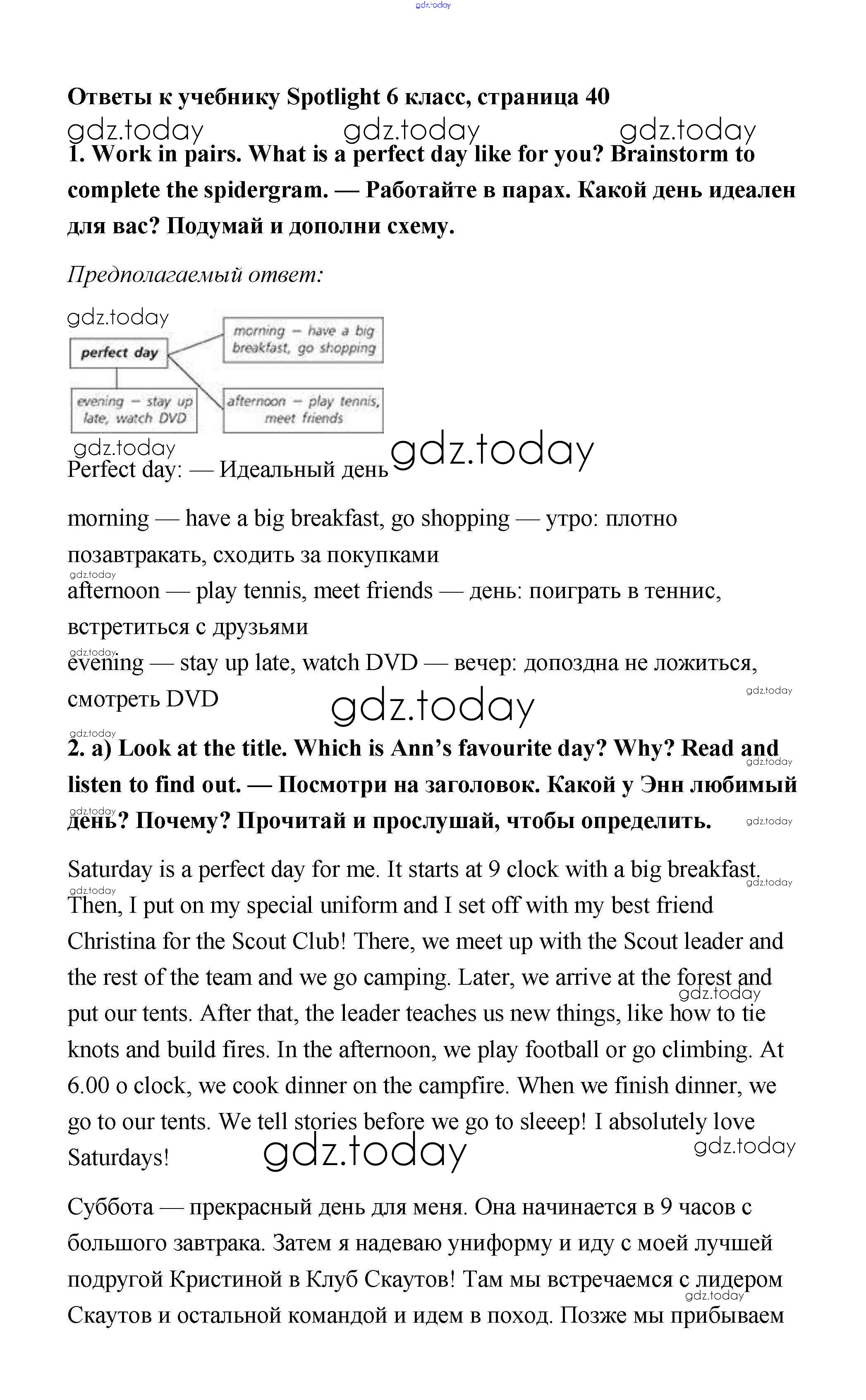 Ответы к Решение к Module 4. Day after day. Страницы 40 Учебнику по Английскому языку для 6 класса Ваулина, Дули Просвещение Spotlight 2017