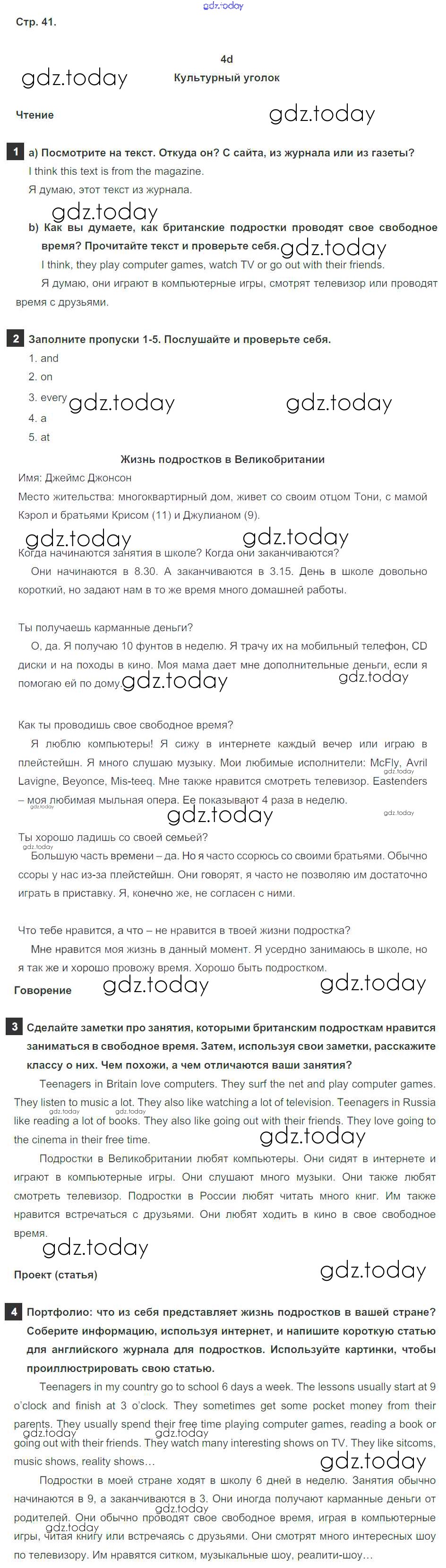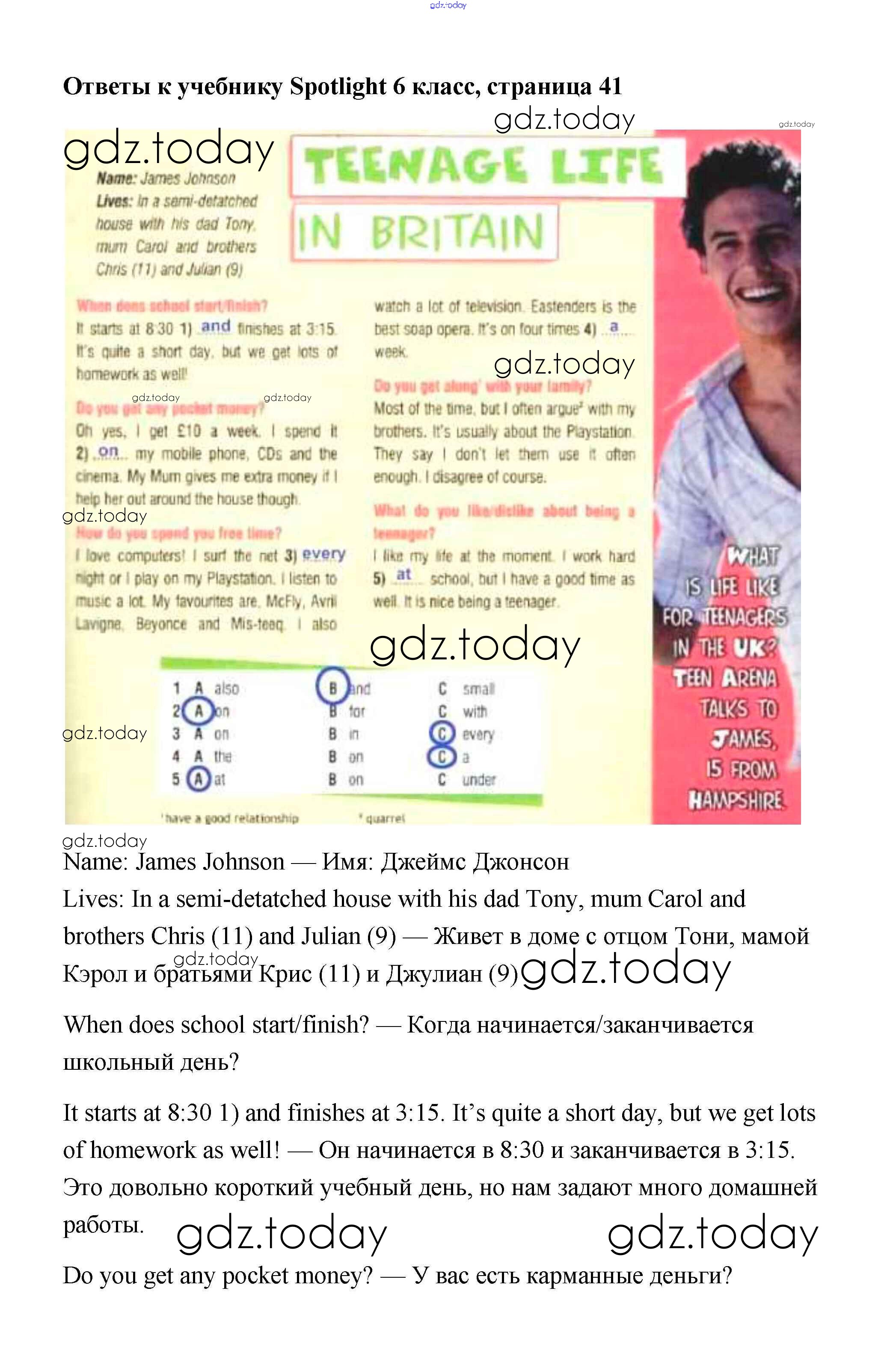 Ответы к Решение к Module 4. Day after day. Страницы 41 Учебнику по Английскому языку для 6 класса Ваулина, Дули Просвещение Spotlight 2017
