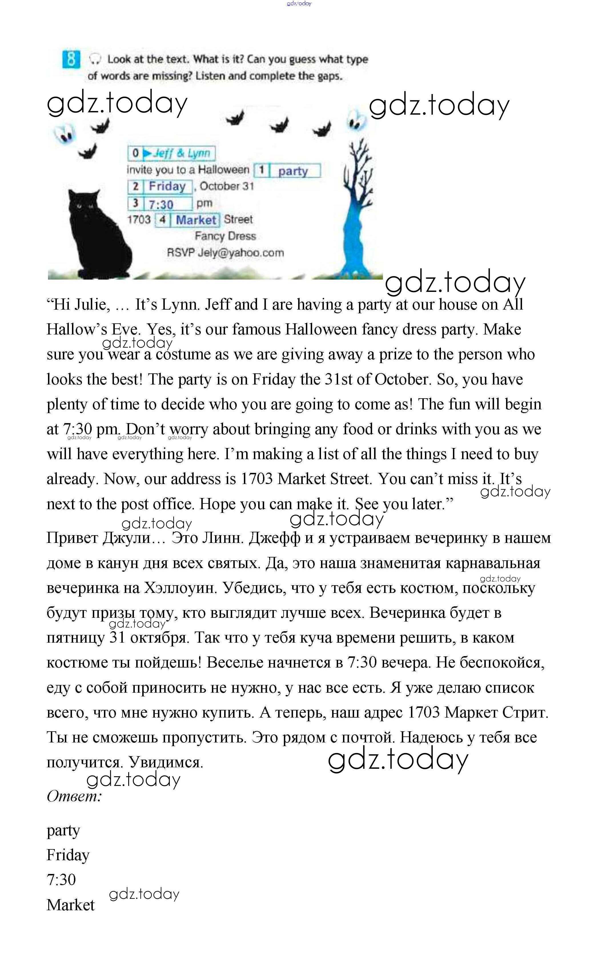 На страницах сайта gdz.today вы найдете учебный и вспомогательный материал, направленный на улучшения знаний школьной программы. ГДЗ - онлайн мир знаний Решение к Module 5. Feasts. Страницы 47 Учебнику по Английскому языку для 6 класса Ваулина, Дули Просвещение Spotlight 2017