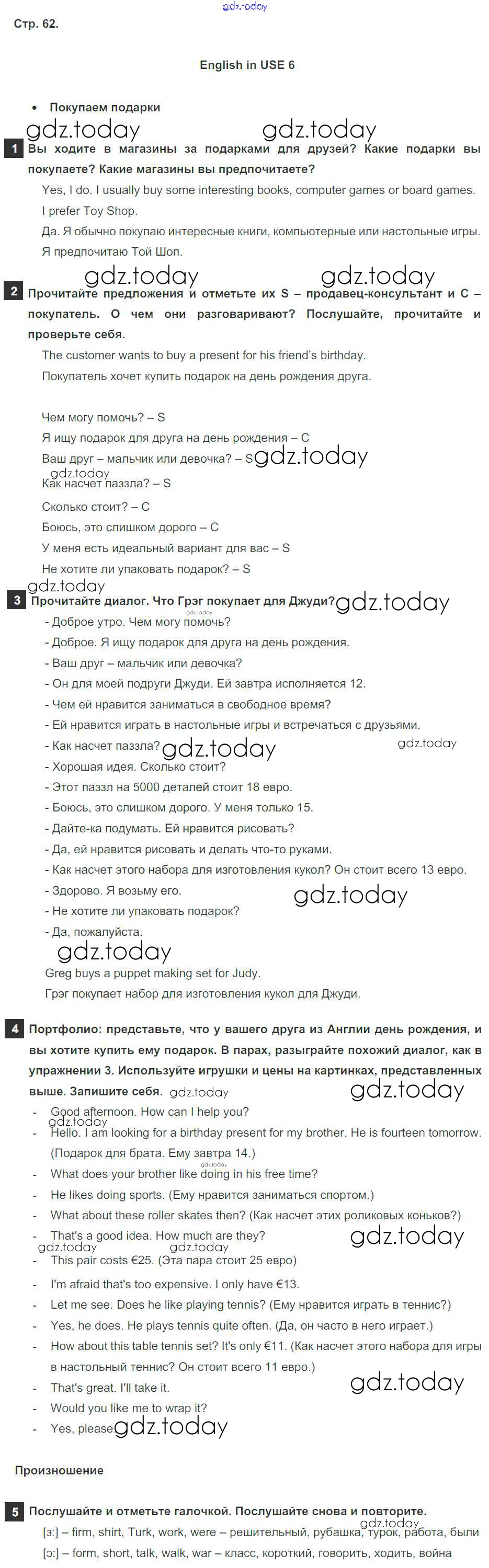 Ответы к Решение к Module 6. Leisure activities. Страницы 62 Учебнику по Английскому языку для 6 класса Ваулина, Дули Просвещение Spotlight 2017