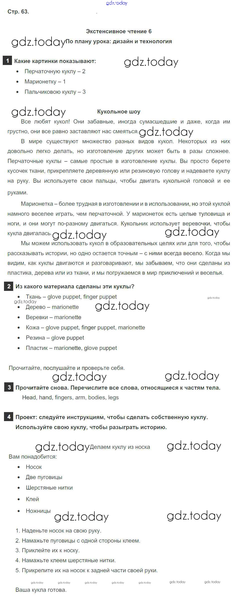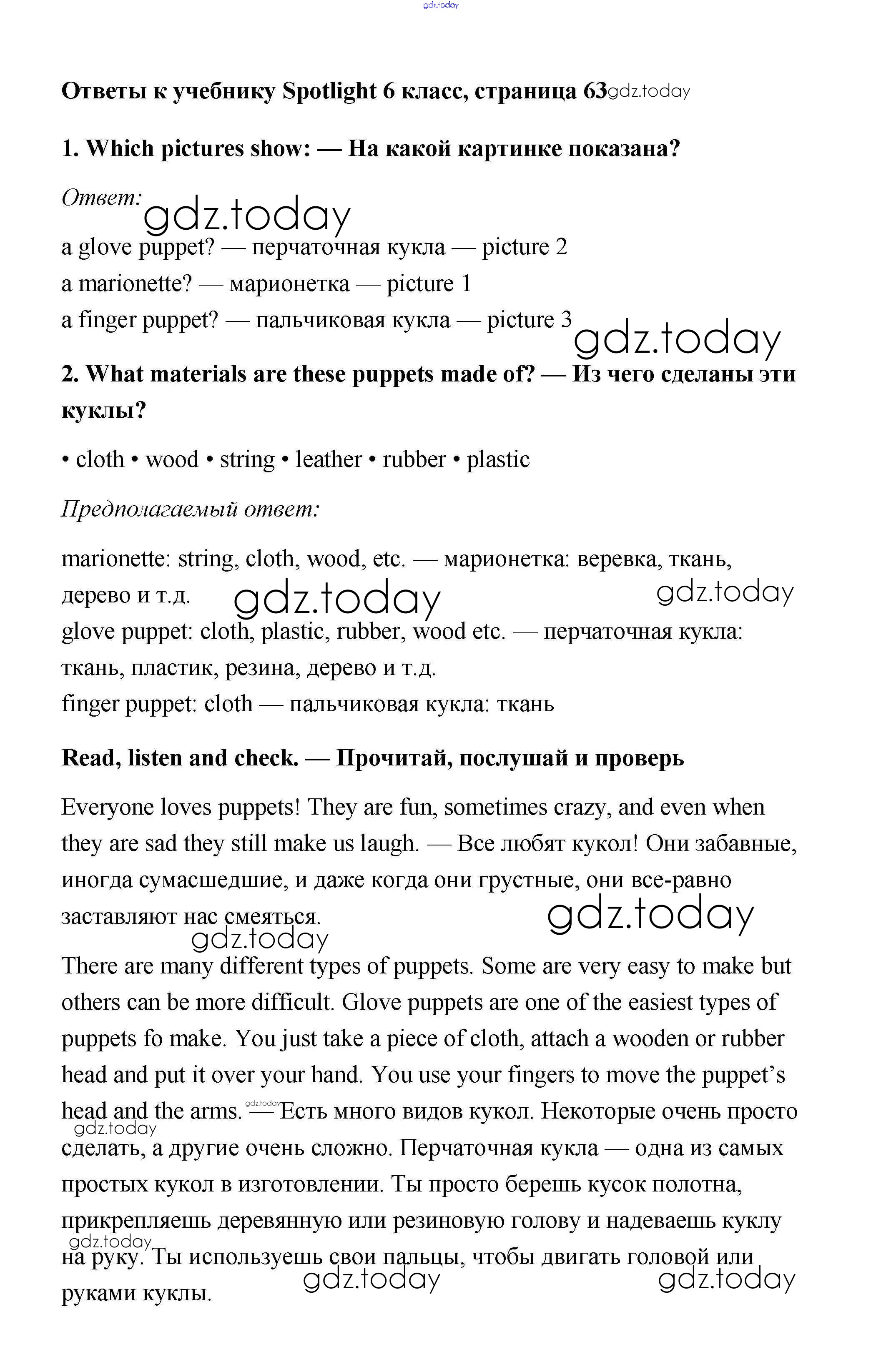 Ответы к Решение к Module 6. Leisure activities. Страницы 63 Учебнику по Английскому языку для 6 класса Ваулина, Дули Просвещение Spotlight 2017