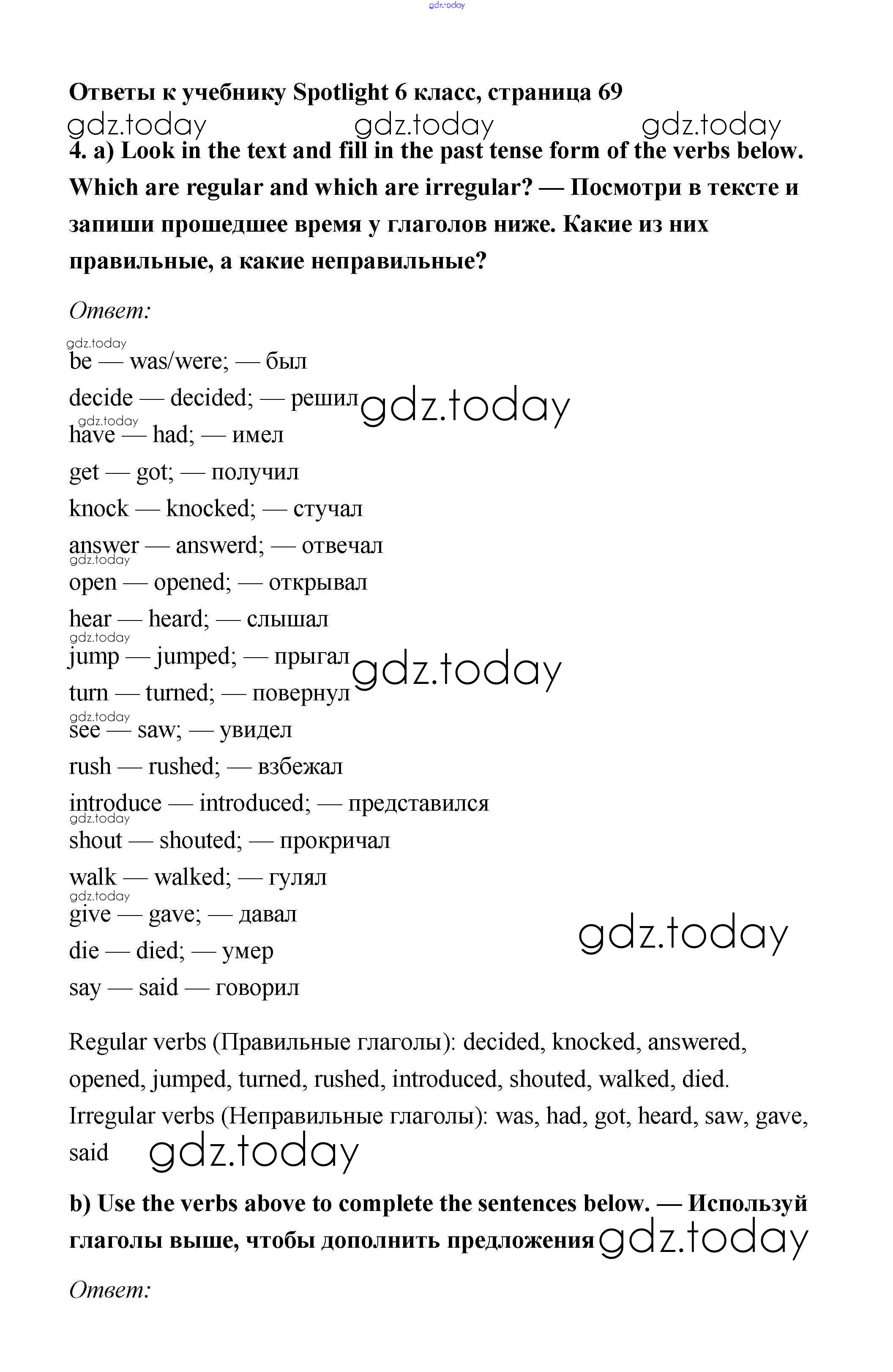 Ответы к Решение к Module 7. Now & then. Страницы 69 Учебнику по Английскому языку для 6 класса Ваулина, Дули Просвещение Spotlight 2017