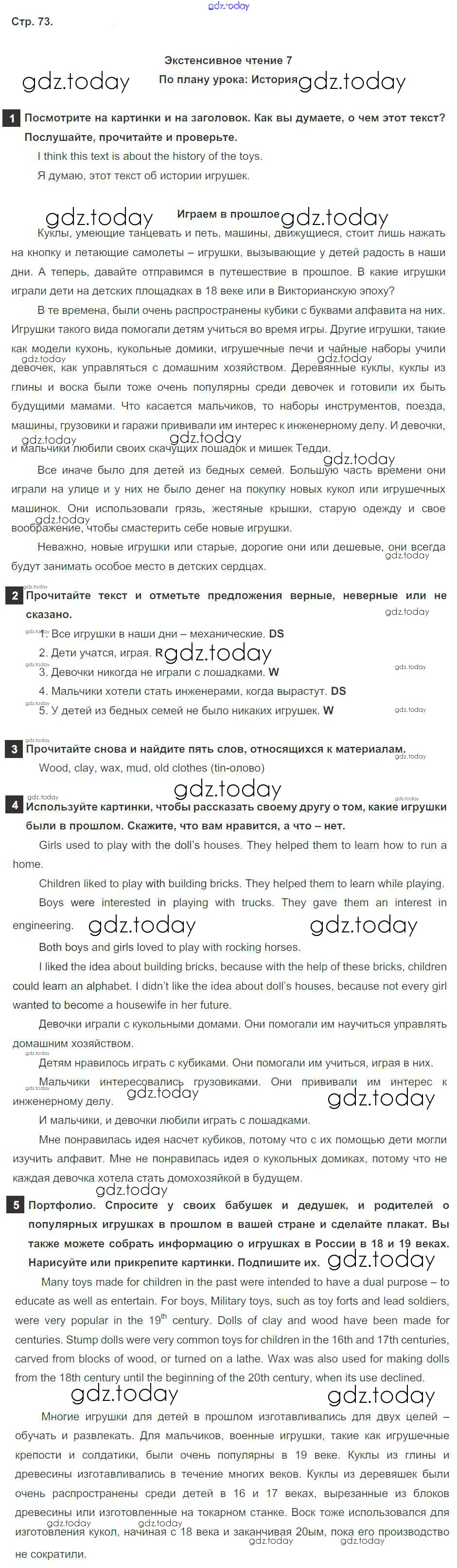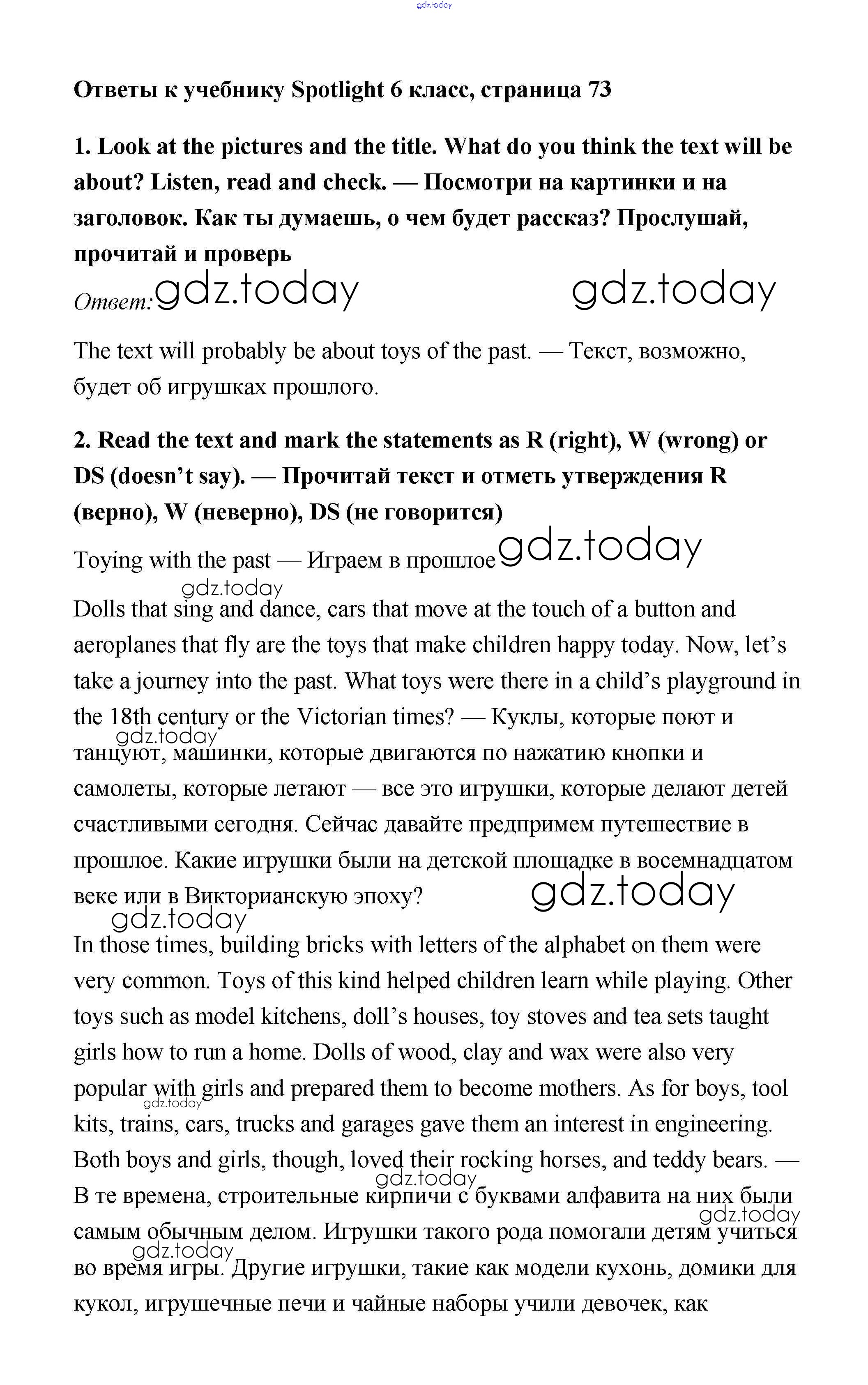 Ответы к Решение к Module 7. Now & then. Страницы 73 Учебнику по Английскому языку для 6 класса Ваулина, Дули Просвещение Spotlight 2017