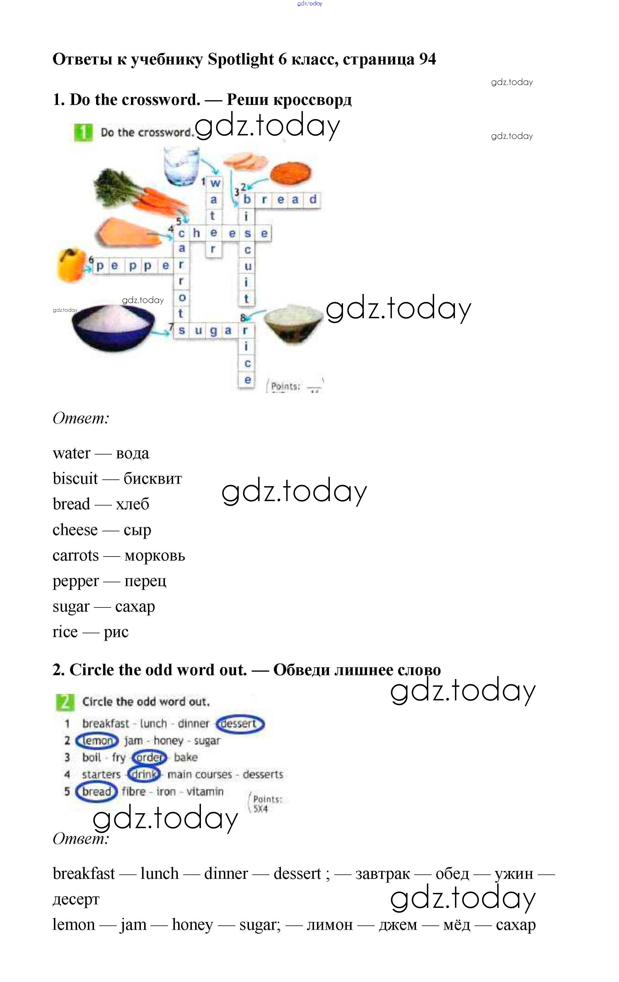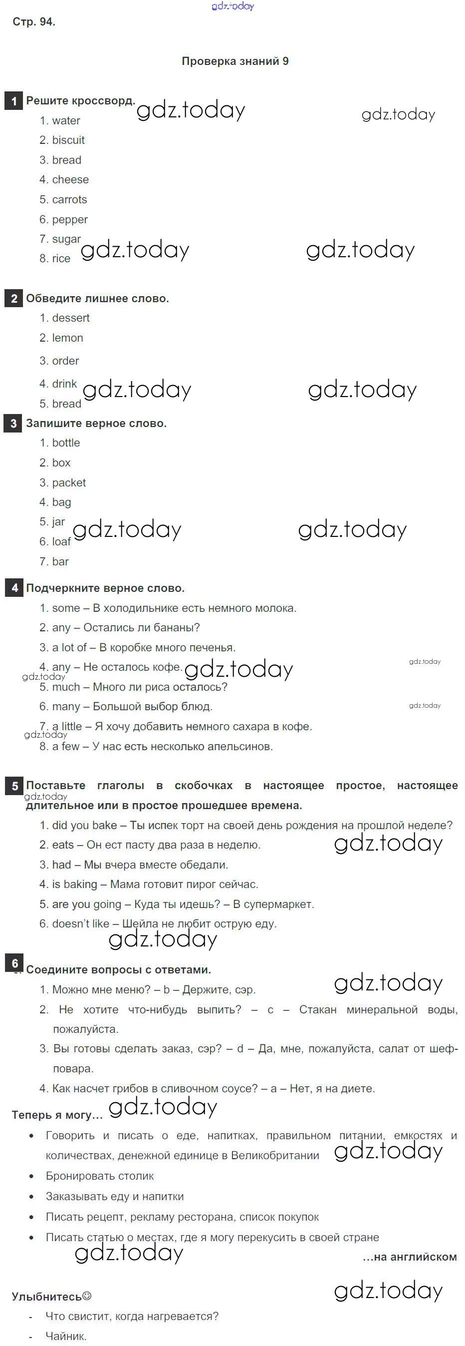 Ответы к Решение к Module 9. Food & Refreshments. Страницы 94 Учебнику по Английскому языку для 6 класса Ваулина, Дули Просвещение Spotlight 2017