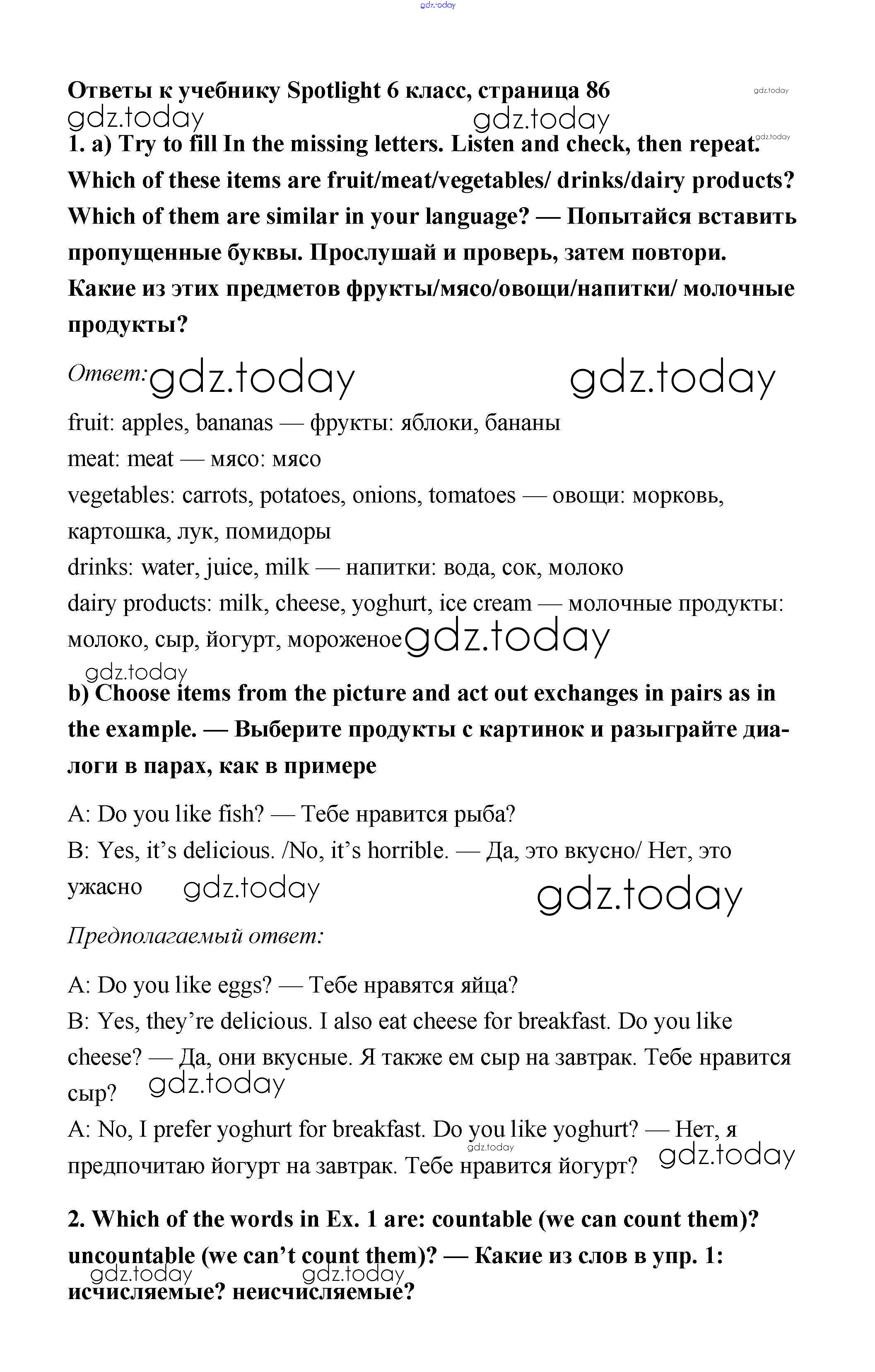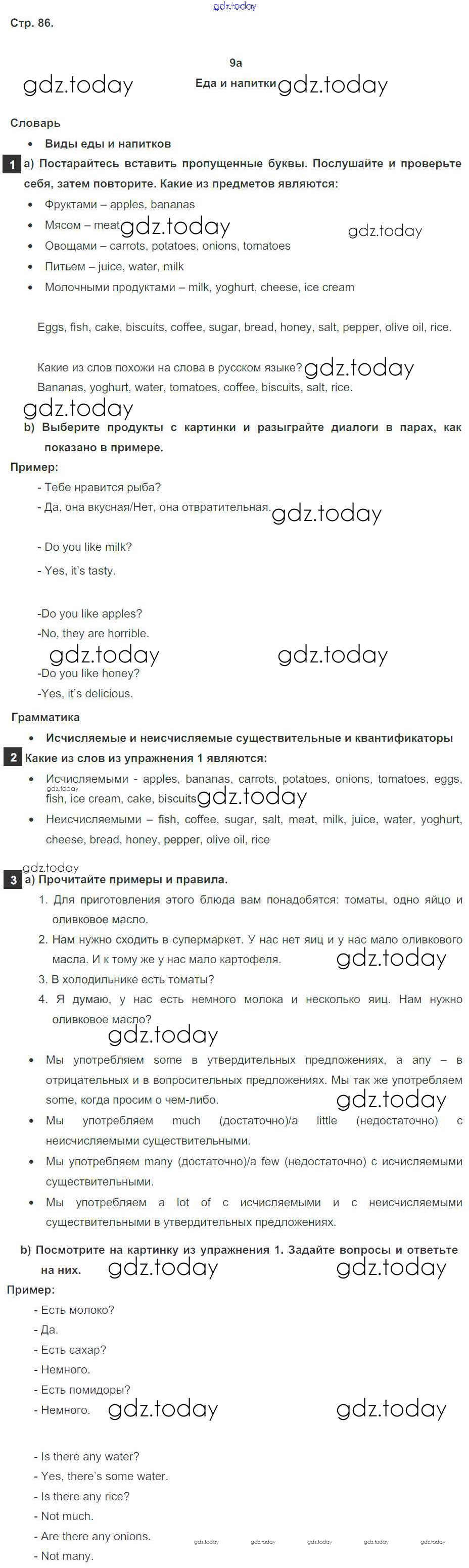 Ответы к Решение к Module 9. Food & Refreshments. Страницы 86 Учебнику по Английскому языку для 6 класса Ваулина, Дули Просвещение Spotlight 2017