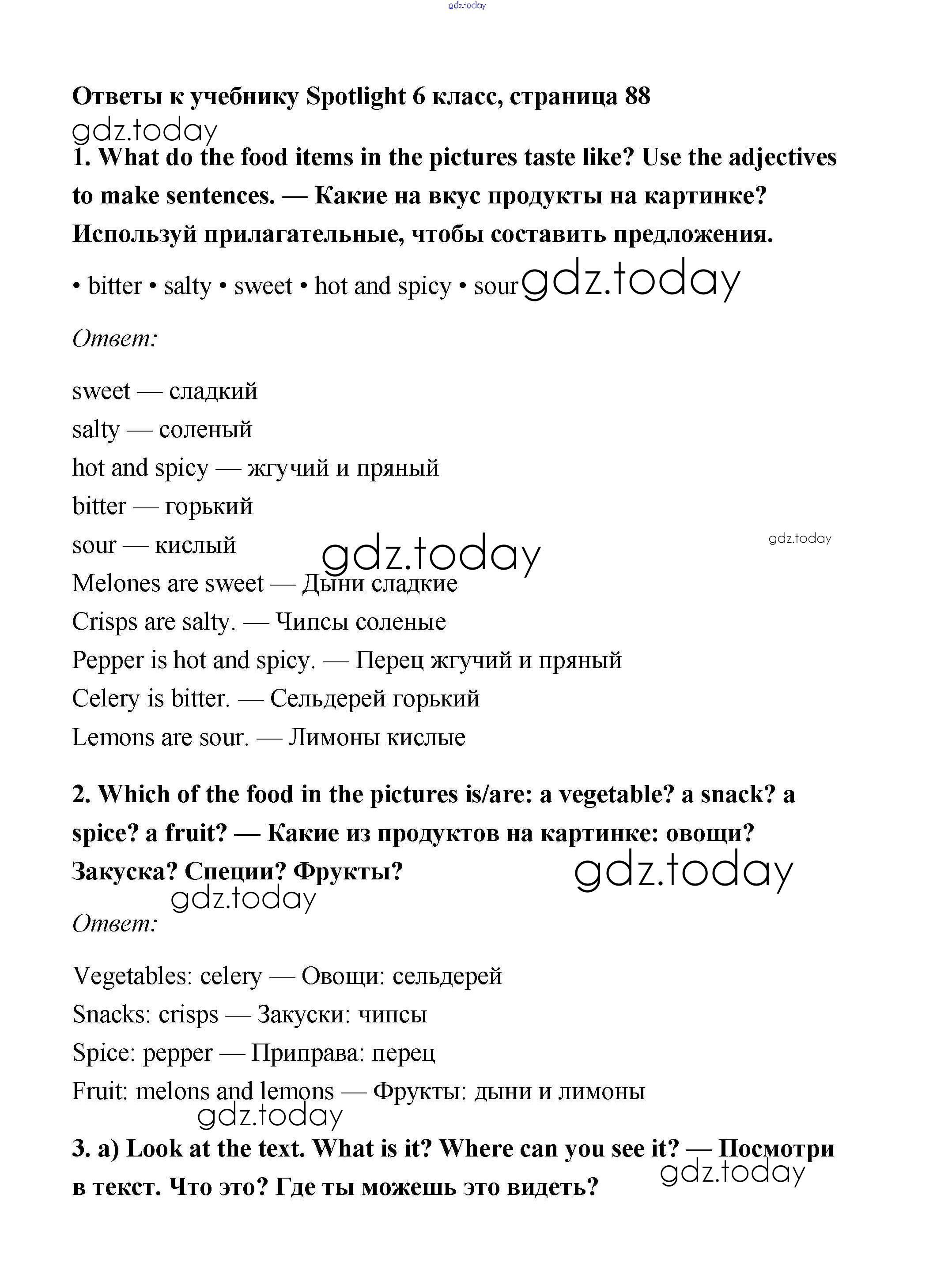 Ответы к Решение к Module 9. Food & Refreshments. Страницы 88 Учебнику по Английскому языку для 6 класса Ваулина, Дули Просвещение Spotlight 2017