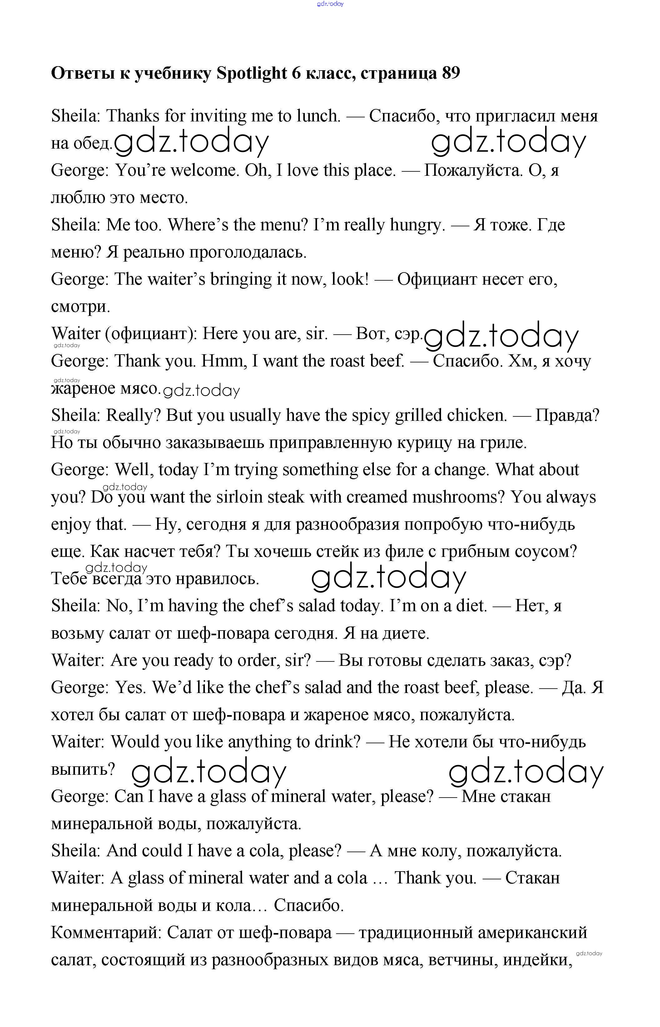 Ответы к Решение к Module 9. Food & Refreshments. Страницы 89 Учебнику по Английскому языку для 6 класса Ваулина, Дули Просвещение Spotlight 2017