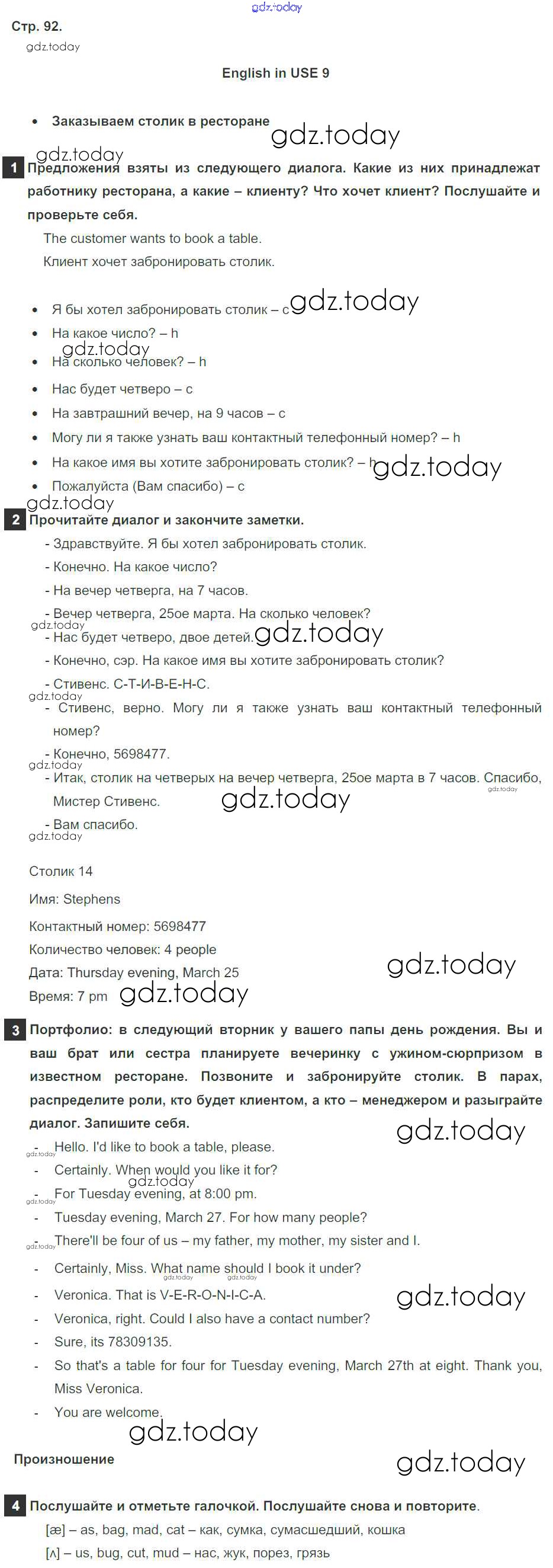 Ответы к Решение к Module 9. Food & Refreshments. Страницы 92 Учебнику по Английскому языку для 6 класса Ваулина, Дули Просвещение Spotlight 2017