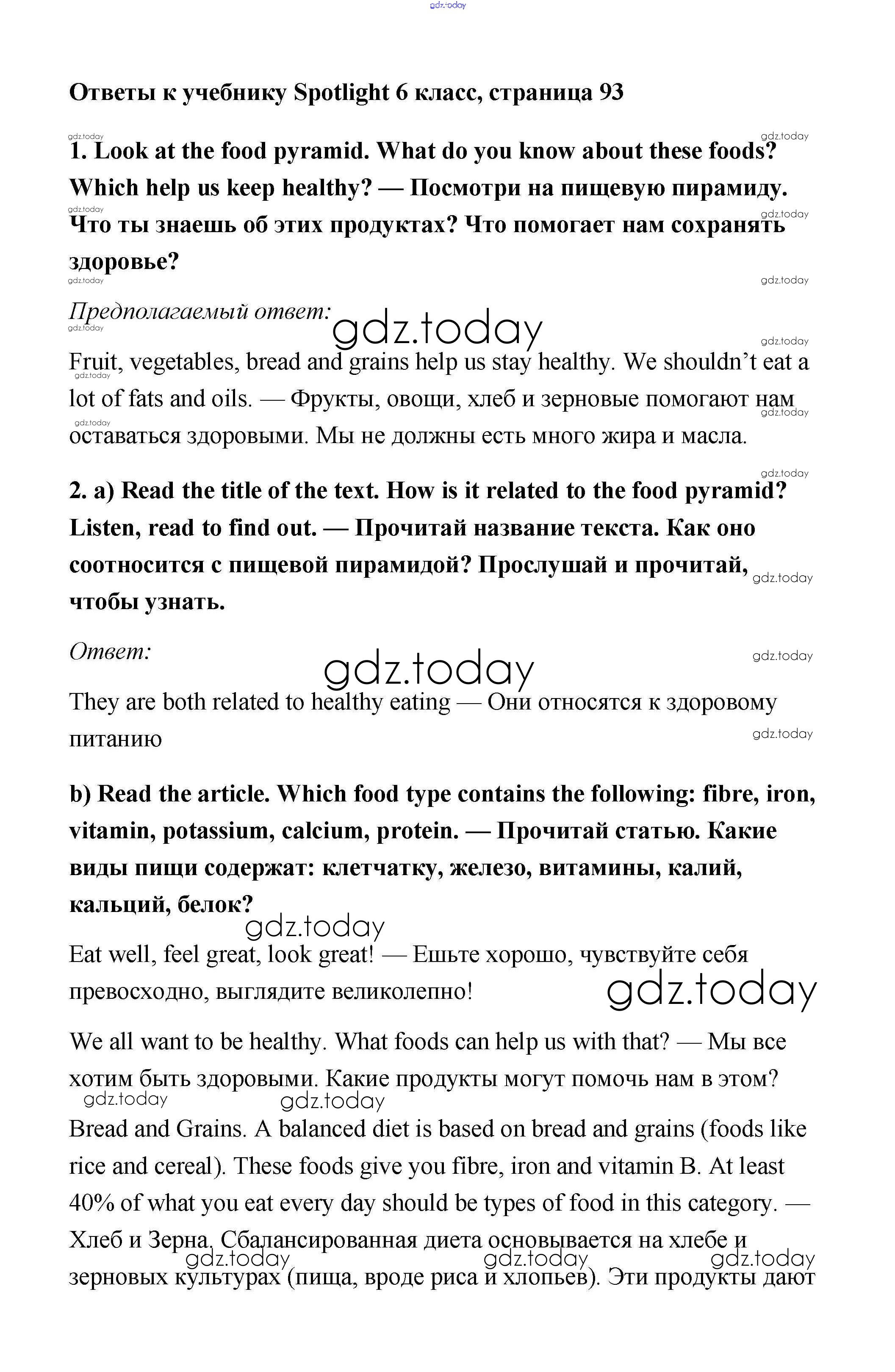 Ответы к Решение к Module 9. Food & Refreshments. Страницы 93 Учебнику по Английскому языку для 6 класса Ваулина, Дули Просвещение Spotlight 2017