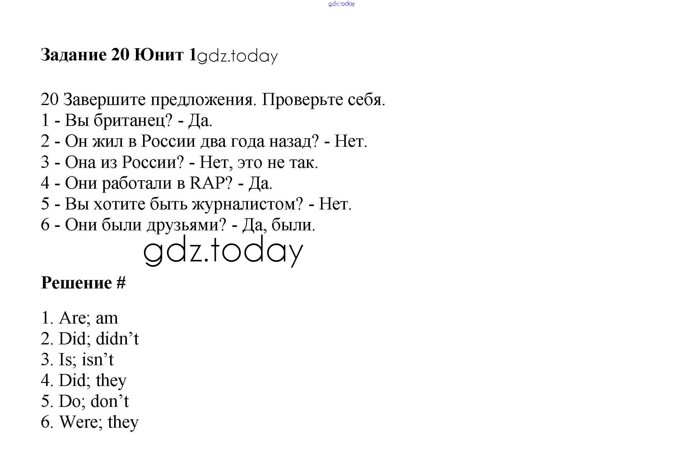 На страницах сайта gdz.today вы найдете учебный и вспомогательный материал, направленный на улучшения знаний школьной программы. ГДЗ - онлайн мир знаний Решение к Unit 1. Greetings and introductions Часть 1 20 Учебнику по Английскому языку для 6 класса Вербицкая, Гаярделли Вентана-граф Forward 2017