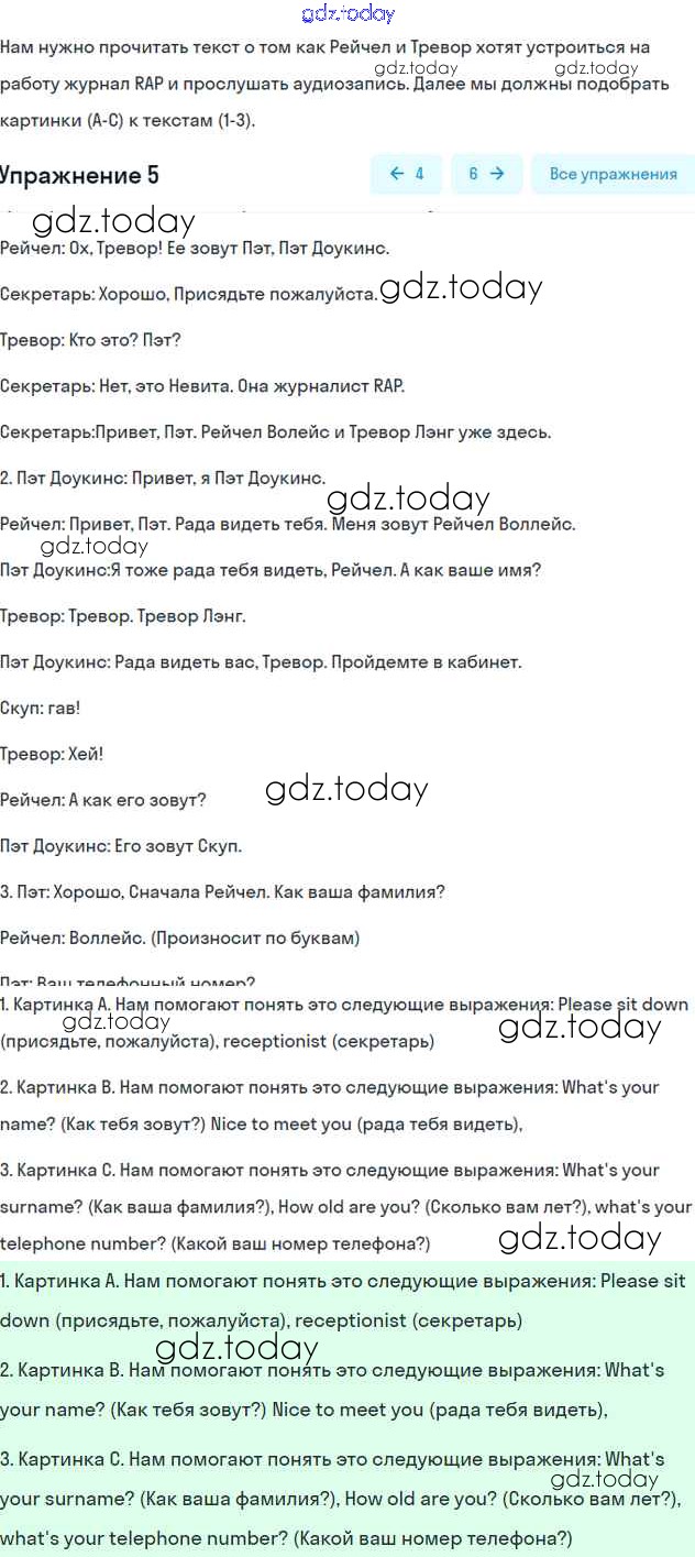 На страницах сайта gdz.today вы найдете учебный и вспомогательный материал, направленный на улучшения знаний школьной программы. ГДЗ - онлайн мир знаний Решение к Unit 1. Greetings and introductions Часть 1 5 Учебнику по Английскому языку для 6 класса Вербицкая, Гаярделли Вентана-граф Forward 2017