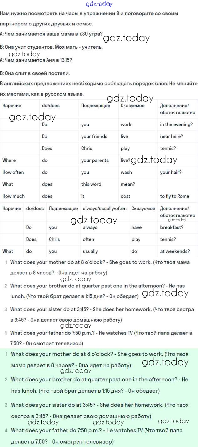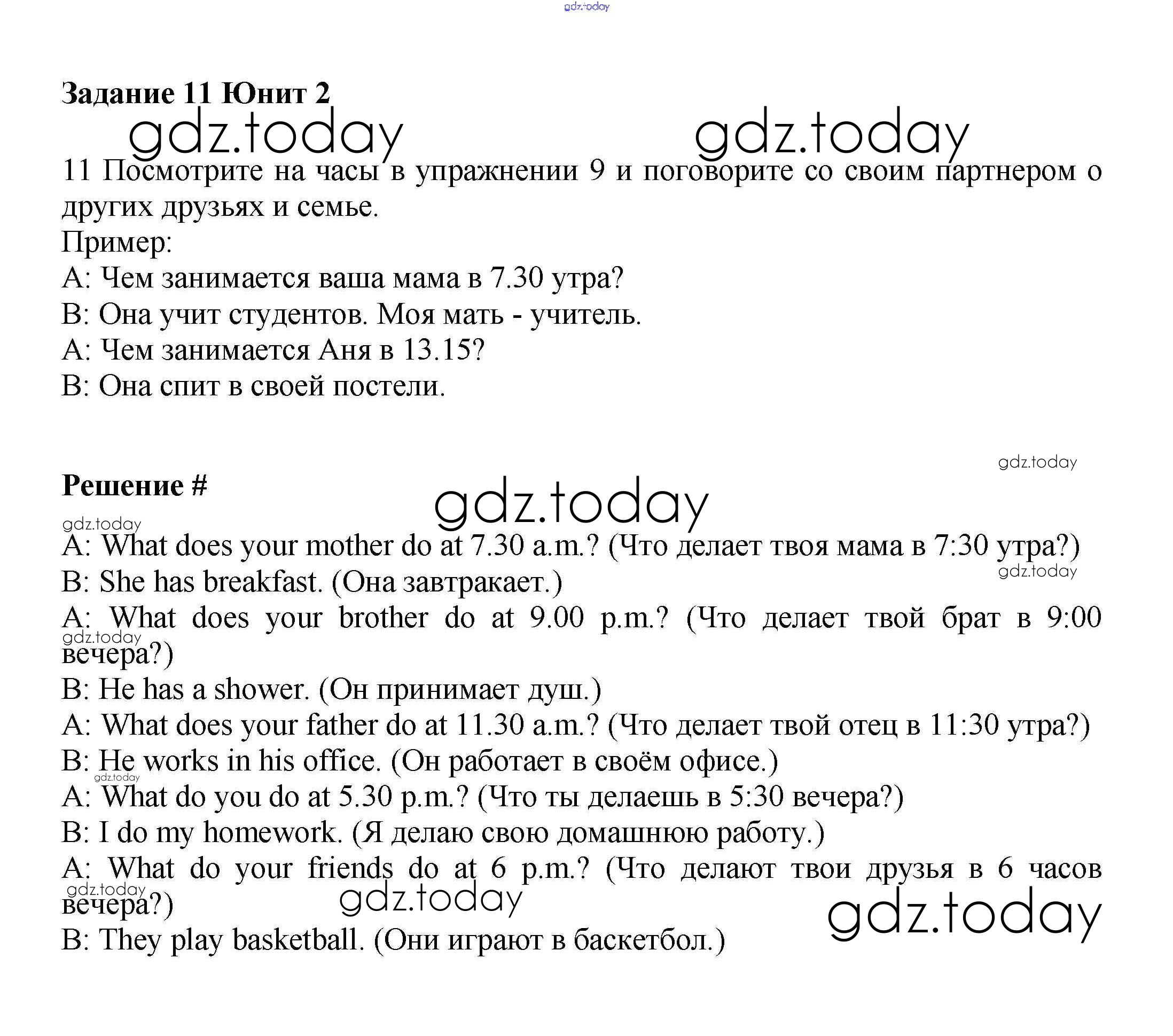 На страницах сайта gdz.today вы найдете учебный и вспомогательный материал, направленный на улучшения знаний школьной программы. ГДЗ - онлайн мир знаний Решение к Unit 2. Daily routines Часть 1 11 Учебнику по Английскому языку для 6 класса Вербицкая, Гаярделли Вентана-граф Forward 2017