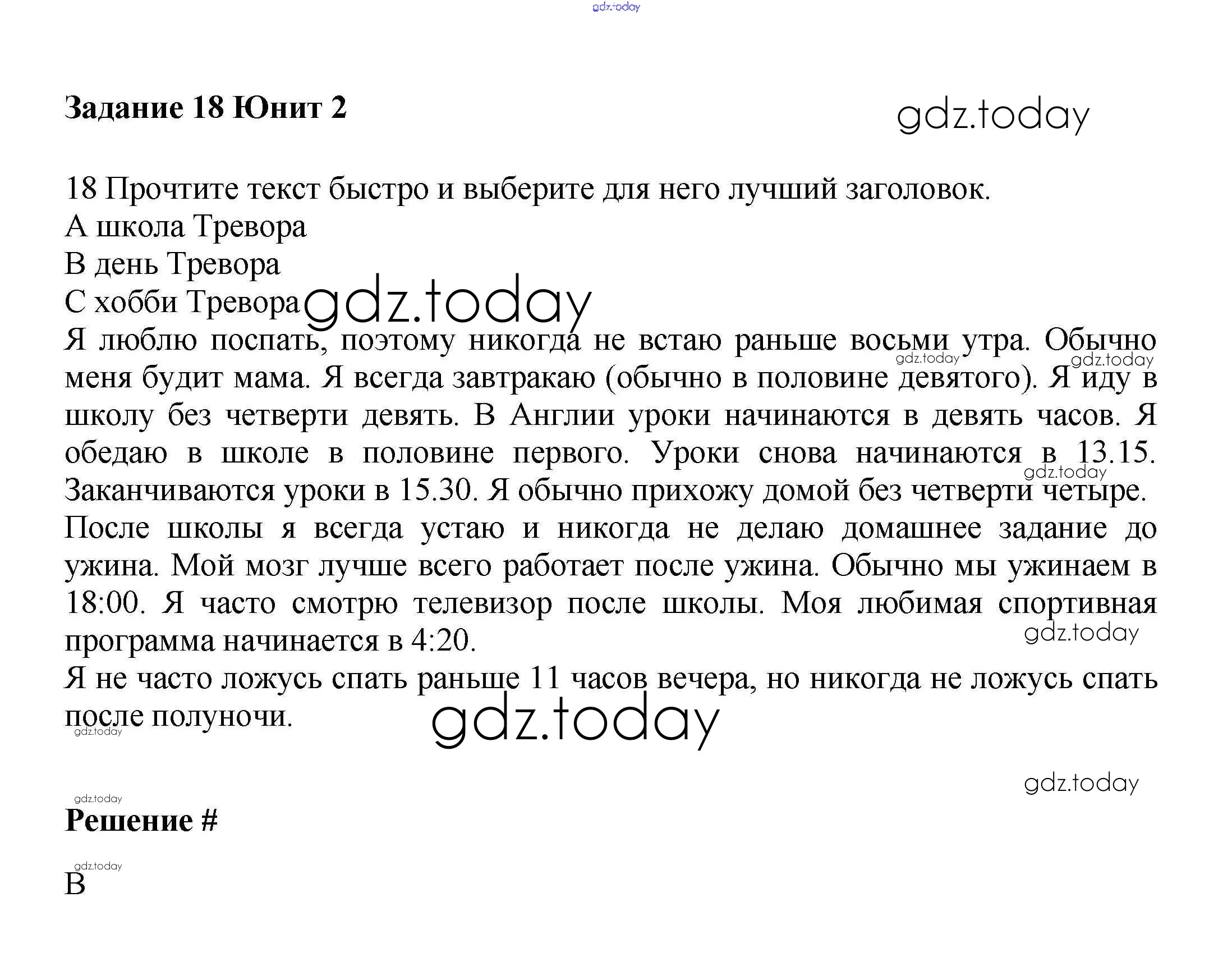 На страницах сайта gdz.today вы найдете учебный и вспомогательный материал, направленный на улучшения знаний школьной программы. ГДЗ - онлайн мир знаний Решение к Unit 2. Daily routines Часть 1 18 Учебнику по Английскому языку для 6 класса Вербицкая, Гаярделли Вентана-граф Forward 2017