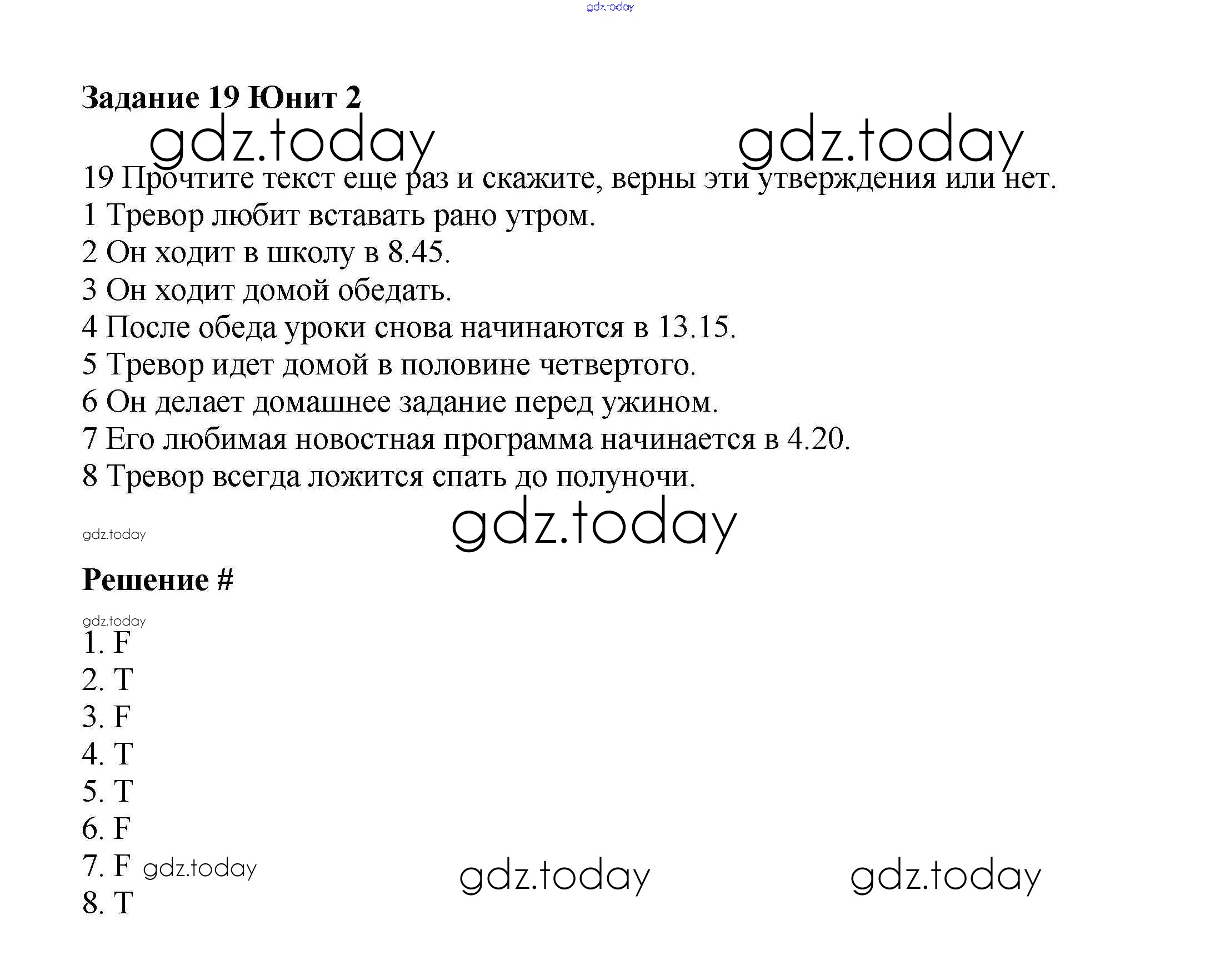На страницах сайта gdz.today вы найдете учебный и вспомогательный материал, направленный на улучшения знаний школьной программы. ГДЗ - онлайн мир знаний Решение к Unit 2. Daily routines Часть 1 19 Учебнику по Английскому языку для 6 класса Вербицкая, Гаярделли Вентана-граф Forward 2017