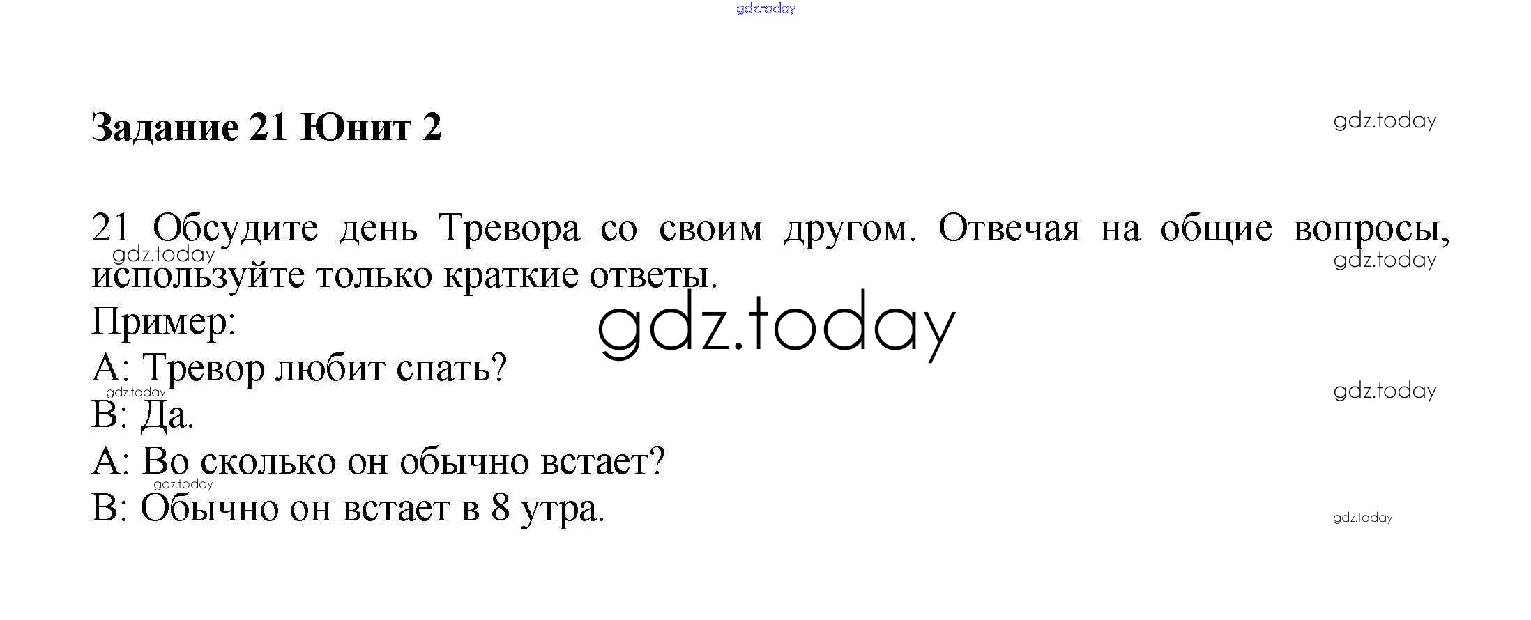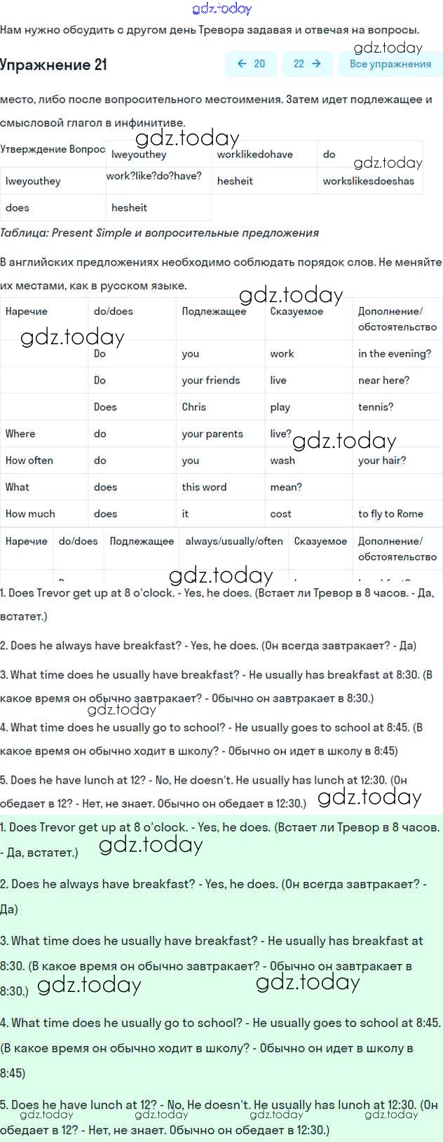 На страницах сайта gdz.today вы найдете учебный и вспомогательный материал, направленный на улучшения знаний школьной программы. ГДЗ - онлайн мир знаний Решение к Unit 2. Daily routines Часть 1 21 Учебнику по Английскому языку для 6 класса Вербицкая, Гаярделли Вентана-граф Forward 2017