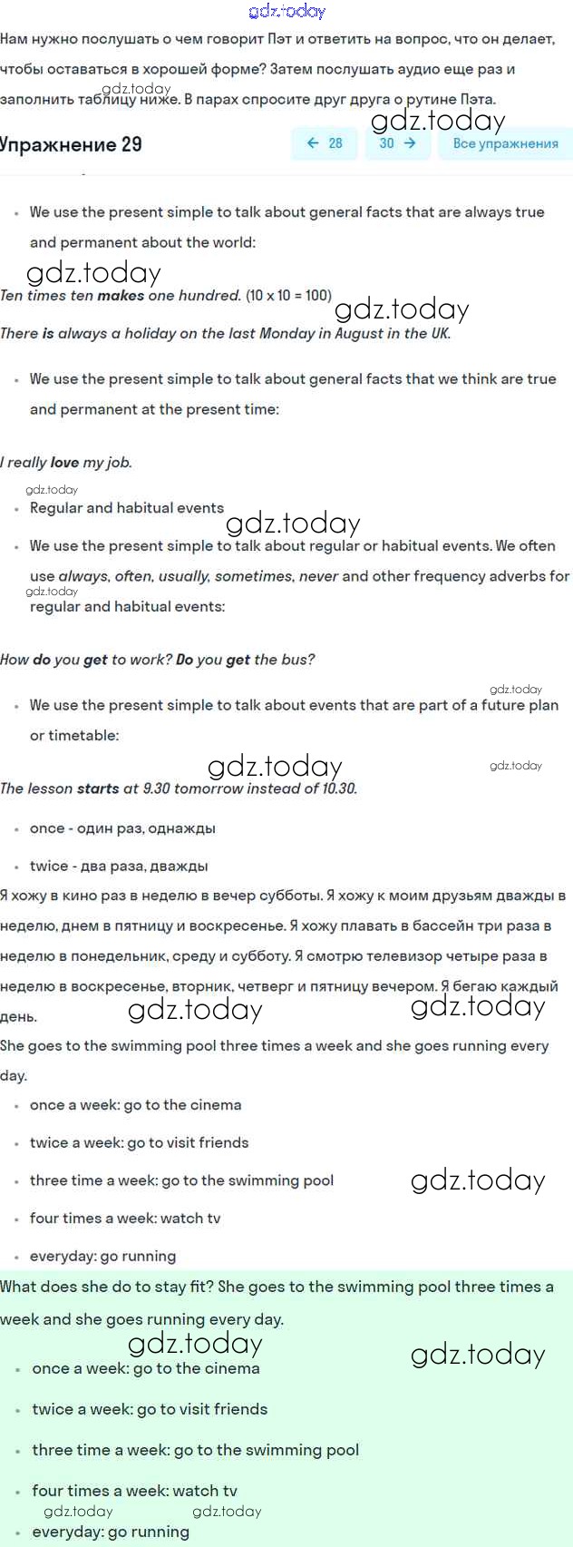 Ответы к Решение к Unit 2. Daily routines Часть 1 29 Учебнику по Английскому языку для 6 класса Вербицкая, Гаярделли Вентана-граф Forward 2017
