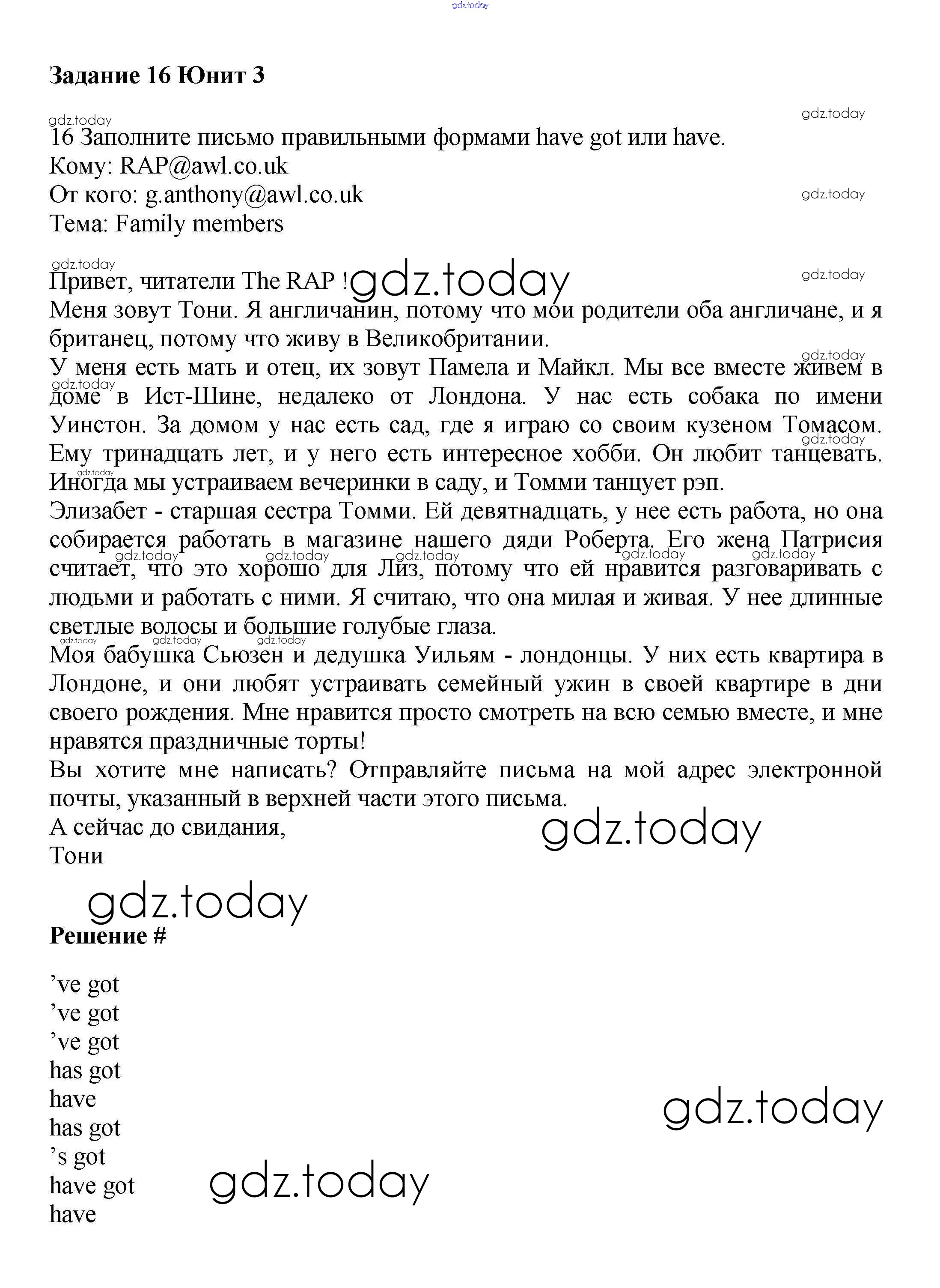 Ответы к Решение к Unit 3. Family members Часть 1 16 Учебнику по Английскому языку для 6 класса Вербицкая, Гаярделли Вентана-граф Forward 2017