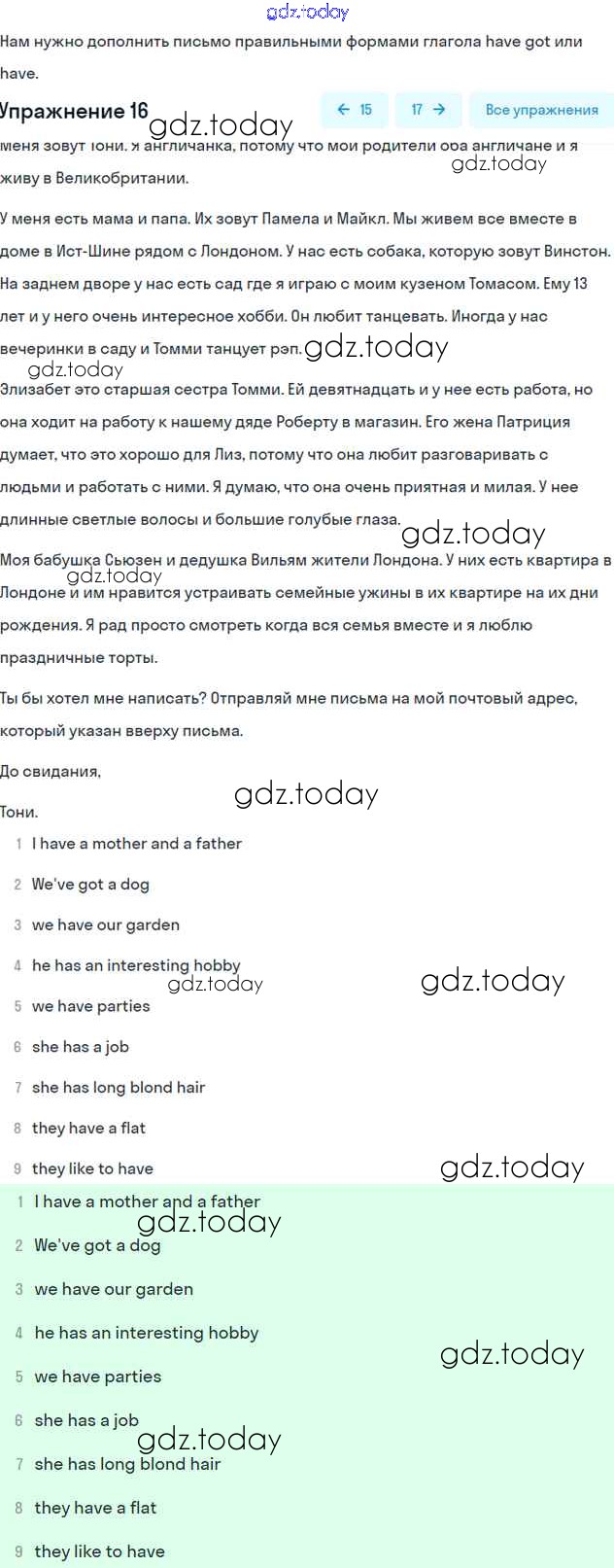 На страницах сайта gdz.today вы найдете учебный и вспомогательный материал, направленный на улучшения знаний школьной программы. ГДЗ - онлайн мир знаний Решение к Unit 3. Family members Часть 1 16 Учебнику по Английскому языку для 6 класса Вербицкая, Гаярделли Вентана-граф Forward 2017