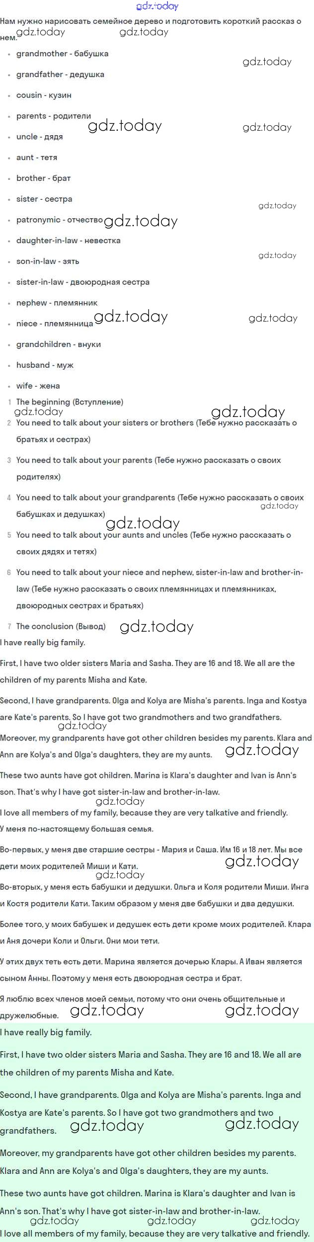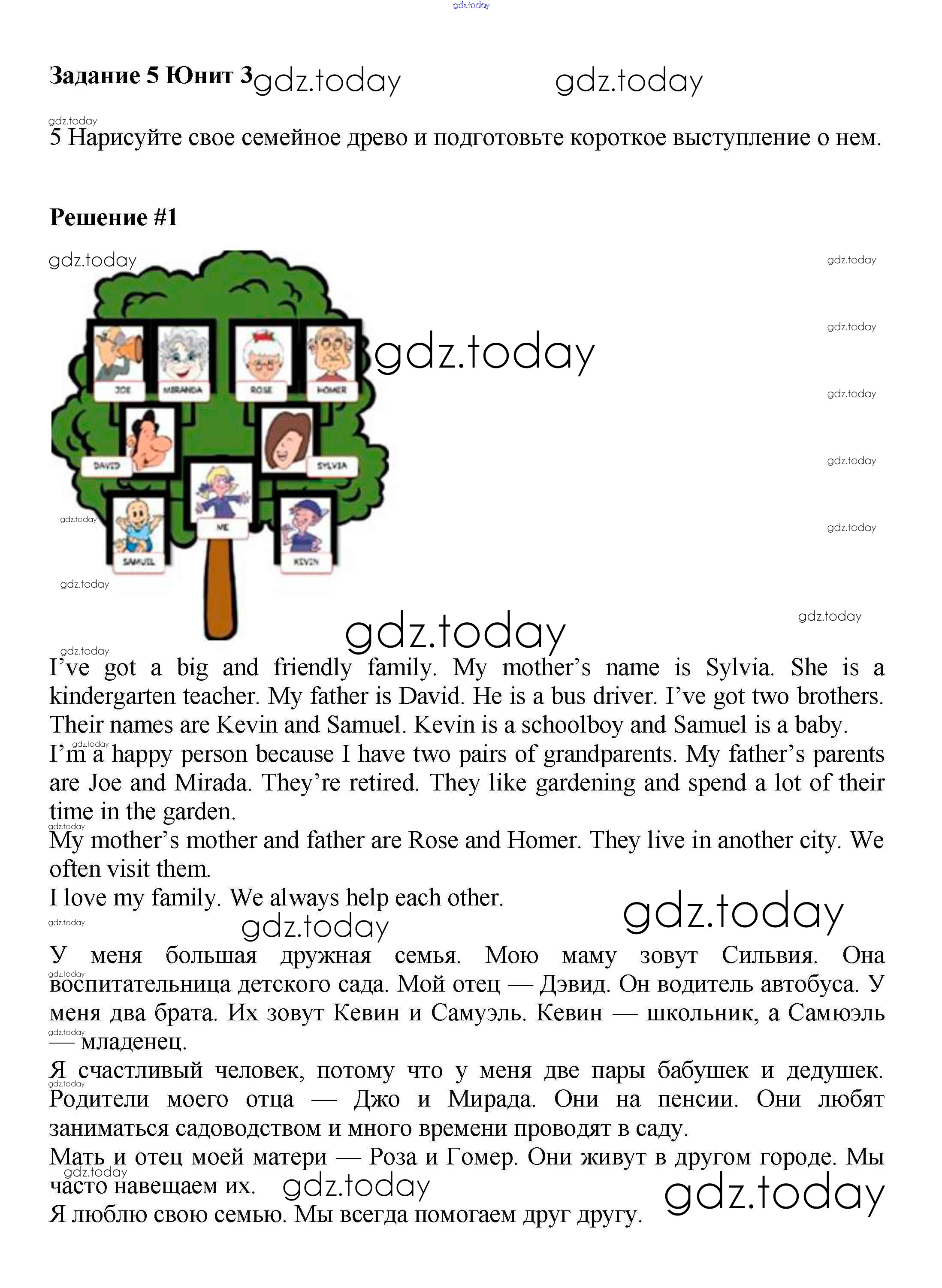 На страницах сайта gdz.today вы найдете учебный и вспомогательный материал, направленный на улучшения знаний школьной программы. ГДЗ - онлайн мир знаний Решение к Unit 3. Family members Часть 1 5 Учебнику по Английскому языку для 6 класса Вербицкая, Гаярделли Вентана-граф Forward 2017