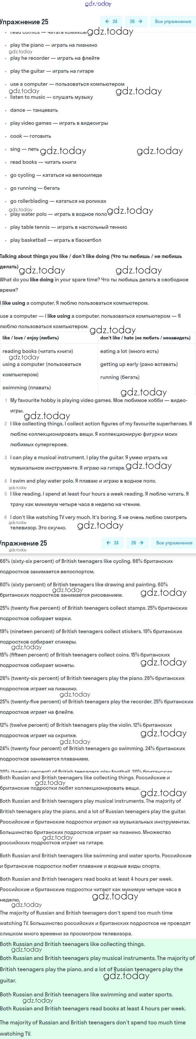На страницах сайта gdz.today вы найдете учебный и вспомогательный материал, направленный на улучшения знаний школьной программы. ГДЗ - онлайн мир знаний Решение к Unit 4. Favourite things Часть 1 25 Учебнику по Английскому языку для 6 класса Вербицкая, Гаярделли Вентана-граф Forward 2017