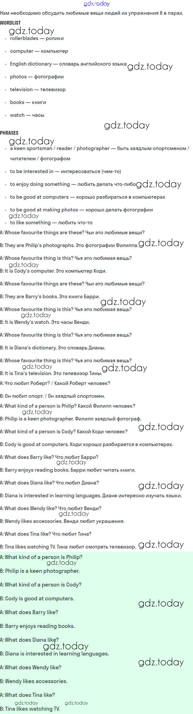 На страницах сайта gdz.today вы найдете учебный и вспомогательный материал, направленный на улучшения знаний школьной программы. ГДЗ - онлайн мир знаний Решение к Unit 4. Favourite things Часть 1 7 Учебнику по Английскому языку для 6 класса Вербицкая, Гаярделли Вентана-граф Forward 2017