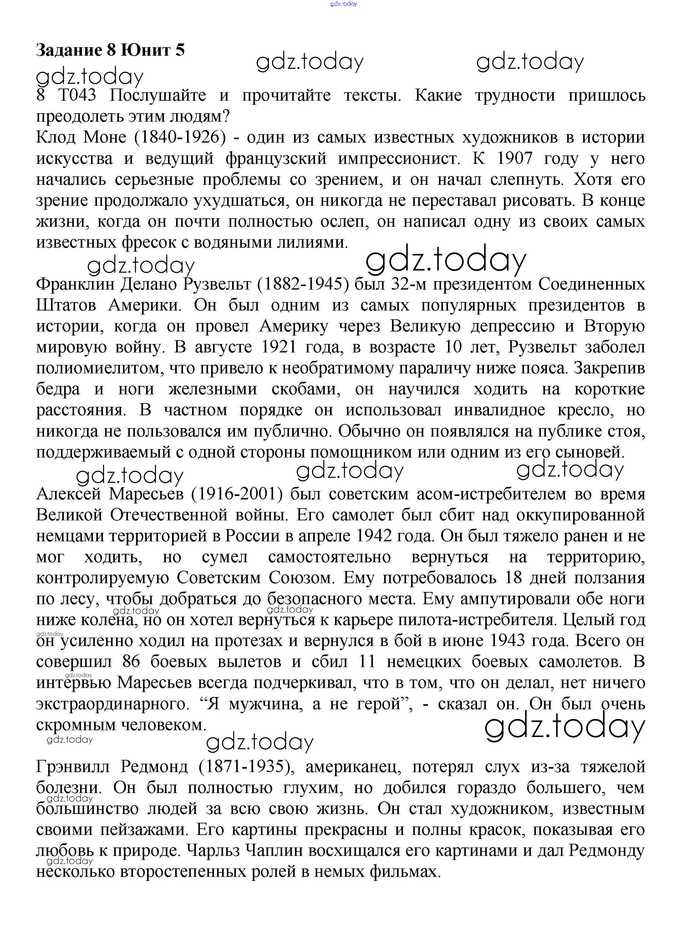 На страницах сайта gdz.today вы найдете учебный и вспомогательный материал, направленный на улучшения знаний школьной программы. ГДЗ - онлайн мир знаний Решение к Unit 5. Talking about abilities Часть 1 8 Учебнику по Английскому языку для 6 класса Вербицкая, Гаярделли Вентана-граф Forward 2017