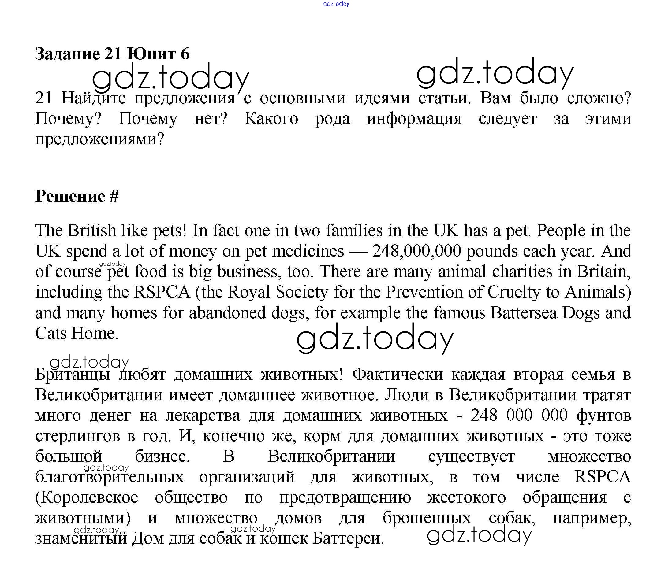 На страницах сайта gdz.today вы найдете учебный и вспомогательный материал, направленный на улучшения знаний школьной программы. ГДЗ - онлайн мир знаний Решение к Unit 6. Animal life Часть 1 21 Учебнику по Английскому языку для 6 класса Вербицкая, Гаярделли Вентана-граф Forward 2017