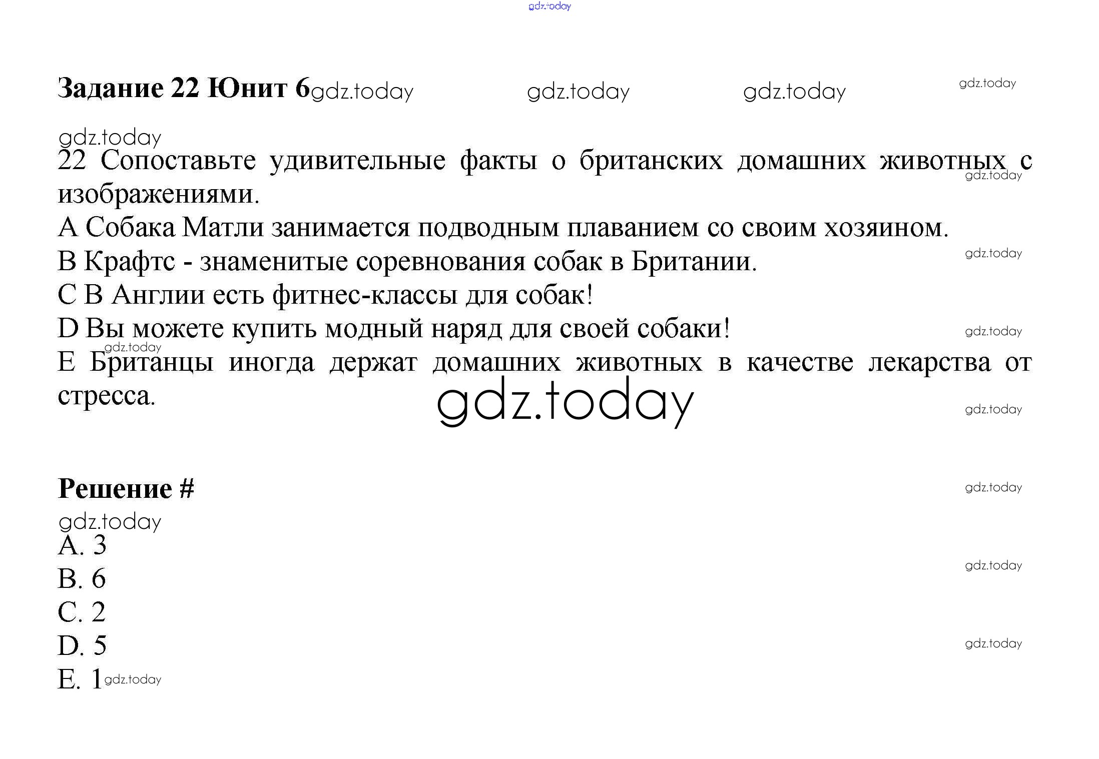 На страницах сайта gdz.today вы найдете учебный и вспомогательный материал, направленный на улучшения знаний школьной программы. ГДЗ - онлайн мир знаний Решение к Unit 6. Animal life Часть 1 22 Учебнику по Английскому языку для 6 класса Вербицкая, Гаярделли Вентана-граф Forward 2017