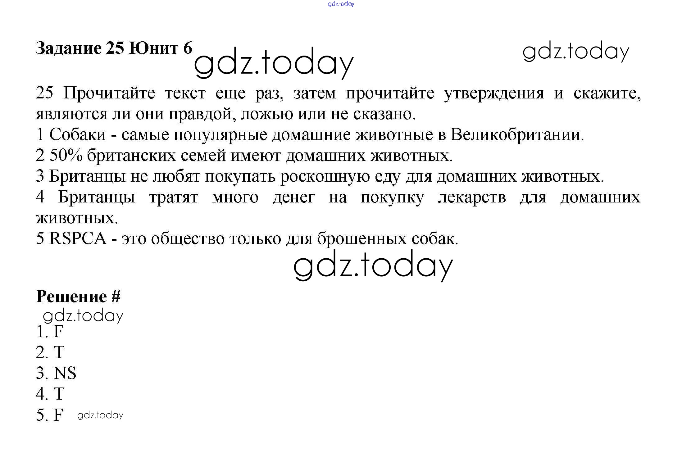 На страницах сайта gdz.today вы найдете учебный и вспомогательный материал, направленный на улучшения знаний школьной программы. ГДЗ - онлайн мир знаний Решение к Unit 6. Animal life Часть 1 25 Учебнику по Английскому языку для 6 класса Вербицкая, Гаярделли Вентана-граф Forward 2017