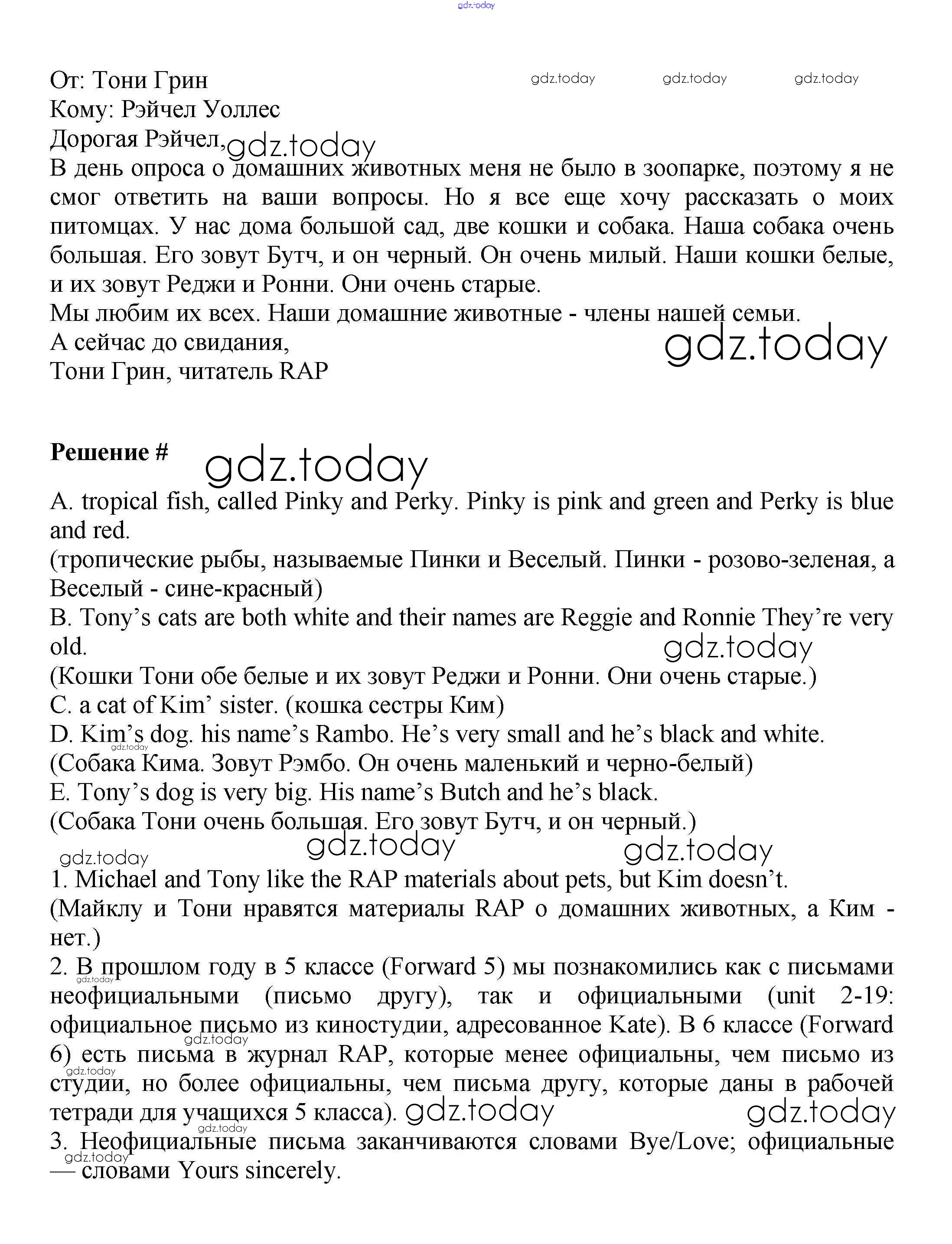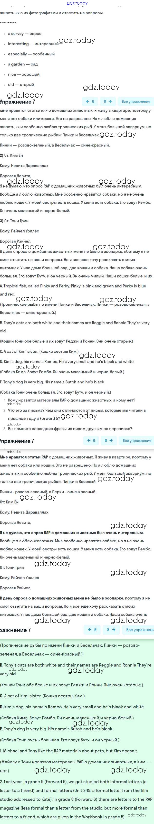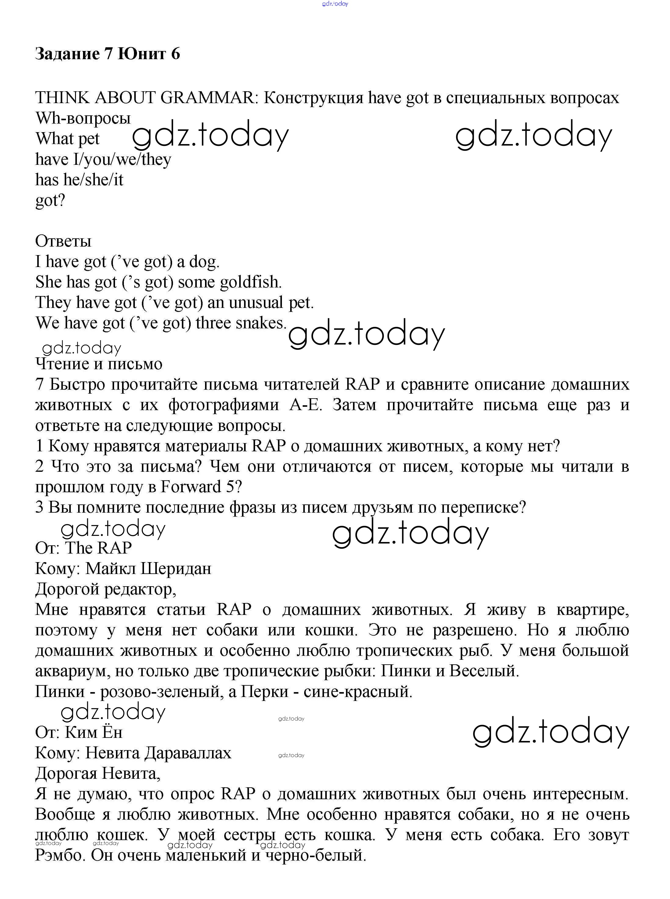 На страницах сайта gdz.today вы найдете учебный и вспомогательный материал, направленный на улучшения знаний школьной программы. ГДЗ - онлайн мир знаний Решение к Unit 6. Animal life Часть 1 7 Учебнику по Английскому языку для 6 класса Вербицкая, Гаярделли Вентана-граф Forward 2017