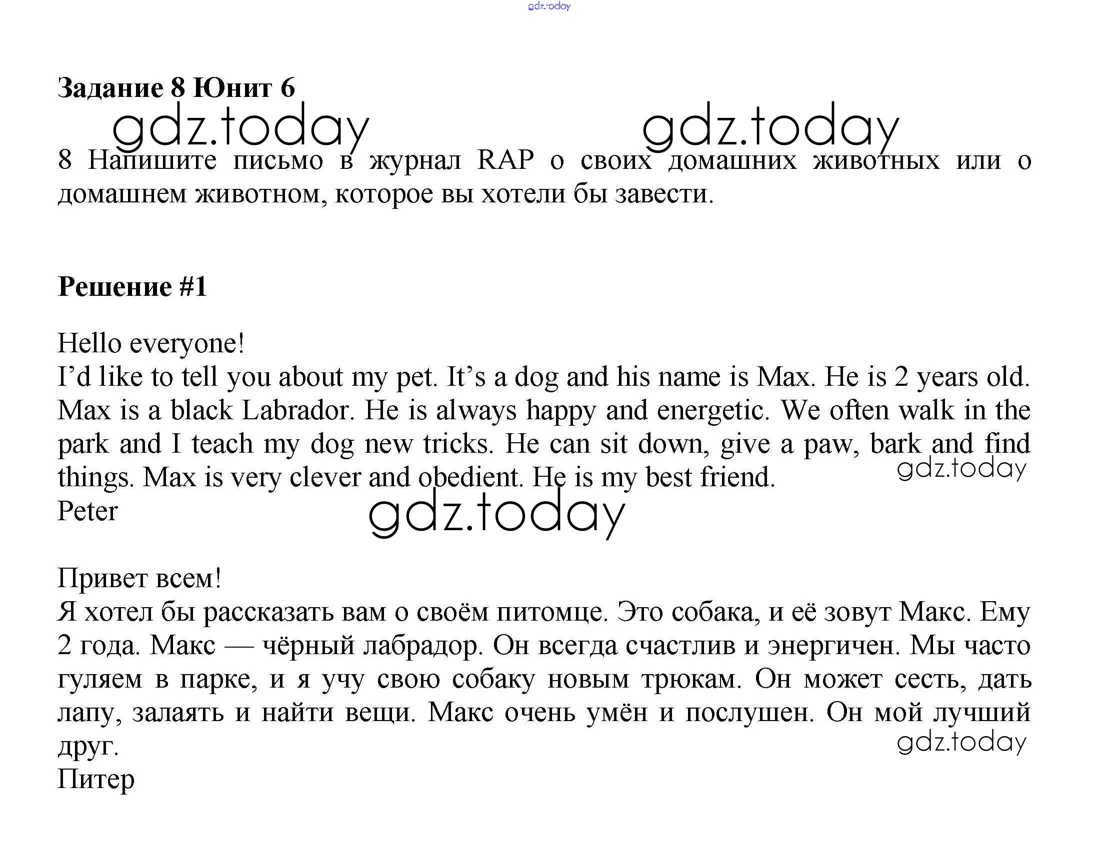 На страницах сайта gdz.today вы найдете учебный и вспомогательный материал, направленный на улучшения знаний школьной программы. ГДЗ - онлайн мир знаний Решение к Unit 6. Animal life Часть 1 8 Учебнику по Английскому языку для 6 класса Вербицкая, Гаярделли Вентана-граф Forward 2017