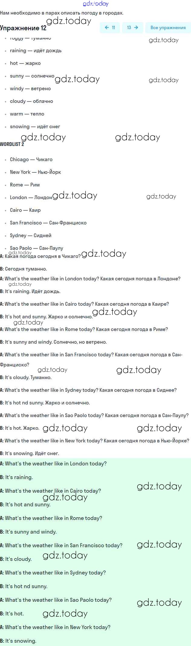 На страницах сайта gdz.today вы найдете учебный и вспомогательный материал, направленный на улучшения знаний школьной программы. ГДЗ - онлайн мир знаний Решение к Unit 7. A postcard from another country Часть 1 12 Учебнику по Английскому языку для 6 класса Вербицкая, Гаярделли Вентана-граф Forward 2017