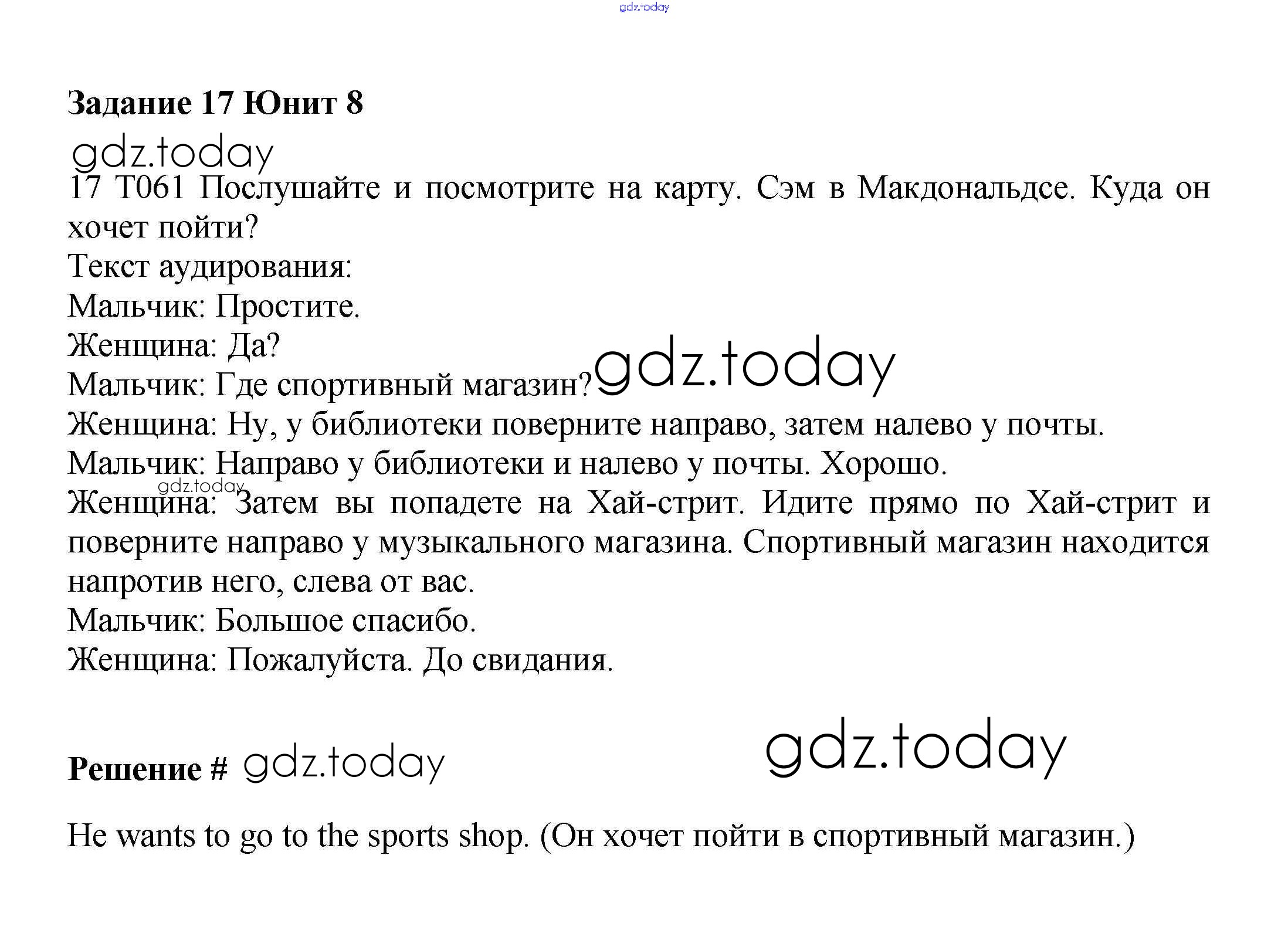 На страницах сайта gdz.today вы найдете учебный и вспомогательный материал, направленный на улучшения знаний школьной программы. ГДЗ - онлайн мир знаний Решение к Unit 8. Holidays and travelling Часть 1 17 Учебнику по Английскому языку для 6 класса Вербицкая, Гаярделли Вентана-граф Forward 2017