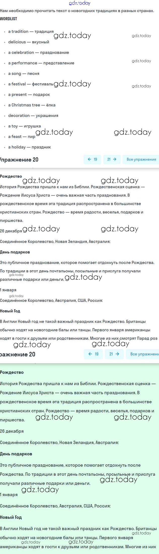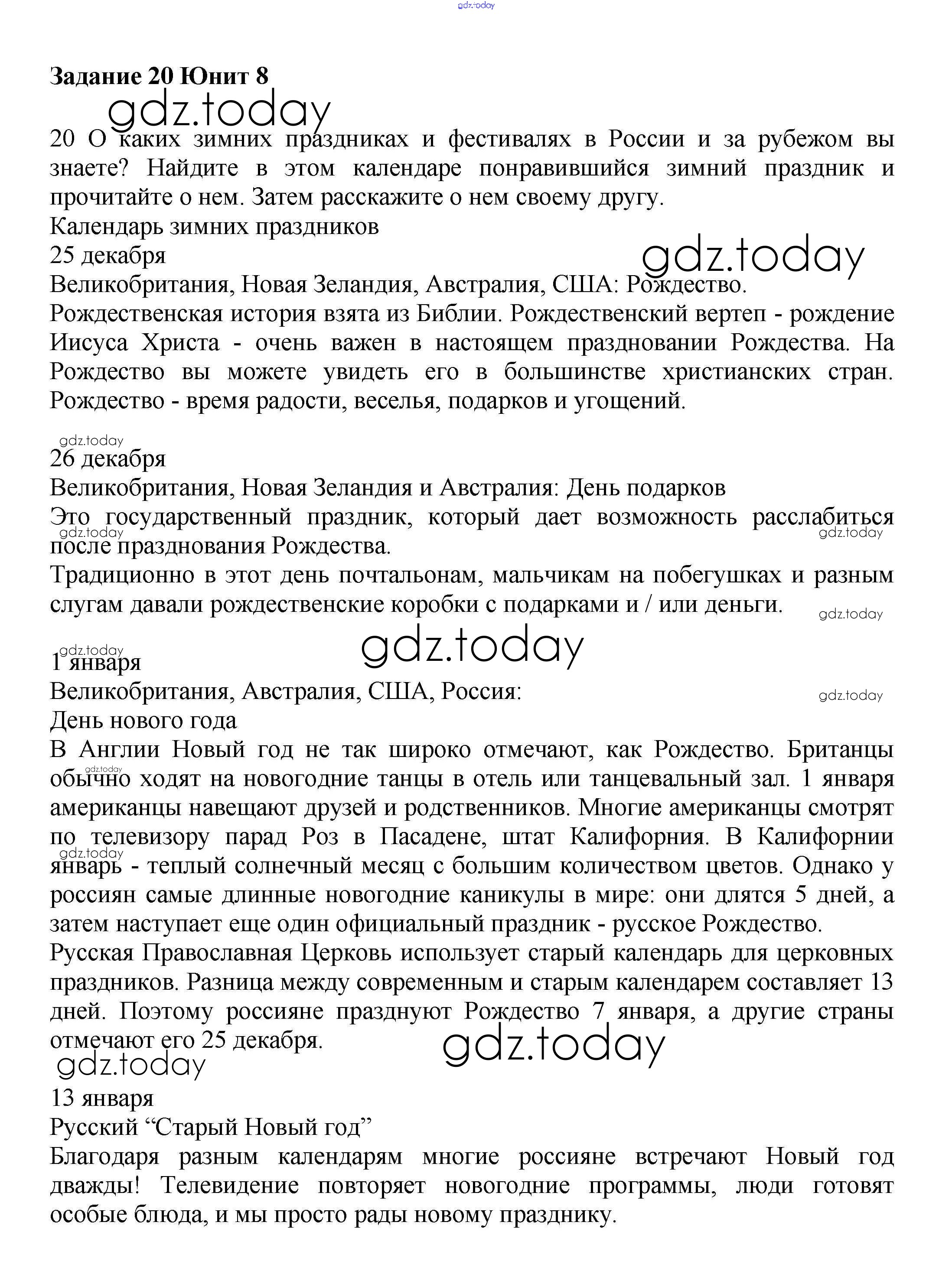 На страницах сайта gdz.today вы найдете учебный и вспомогательный материал, направленный на улучшения знаний школьной программы. ГДЗ - онлайн мир знаний Решение к Unit 8. Holidays and travelling Часть 1 20 Учебнику по Английскому языку для 6 класса Вербицкая, Гаярделли Вентана-граф Forward 2017