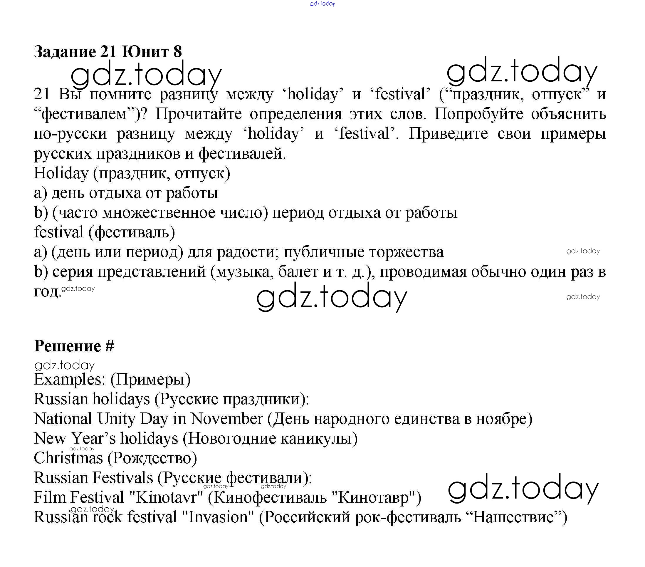 На страницах сайта gdz.today вы найдете учебный и вспомогательный материал, направленный на улучшения знаний школьной программы. ГДЗ - онлайн мир знаний Решение к Unit 8. Holidays and travelling Часть 1 21 Учебнику по Английскому языку для 6 класса Вербицкая, Гаярделли Вентана-граф Forward 2017