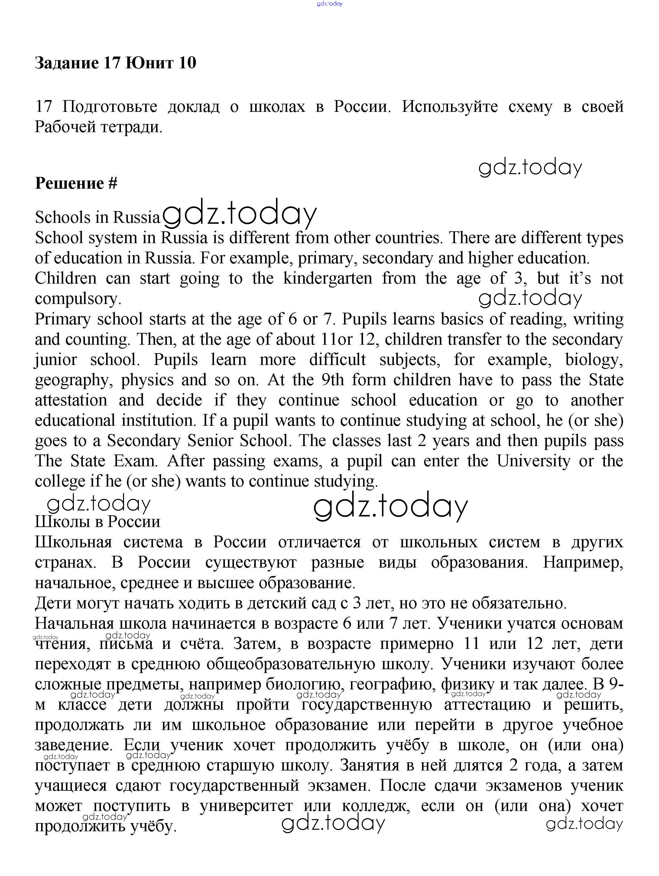 На страницах сайта gdz.today вы найдете учебный и вспомогательный материал, направленный на улучшения знаний школьной программы. ГДЗ - онлайн мир знаний Решение к Unit 10. School subjects Часть 2 17 Учебнику по Английскому языку для 6 класса Вербицкая, Гаярделли Вентана-граф Forward 2017