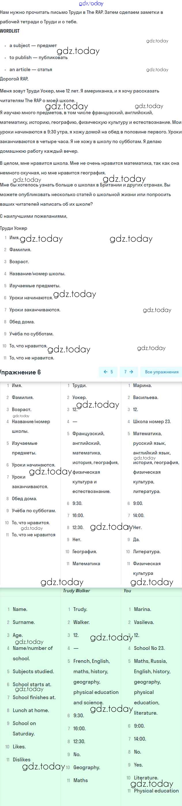 На страницах сайта gdz.today вы найдете учебный и вспомогательный материал, направленный на улучшения знаний школьной программы. ГДЗ - онлайн мир знаний Решение к Unit 10. School subjects Часть 2 6 Учебнику по Английскому языку для 6 класса Вербицкая, Гаярделли Вентана-граф Forward 2017