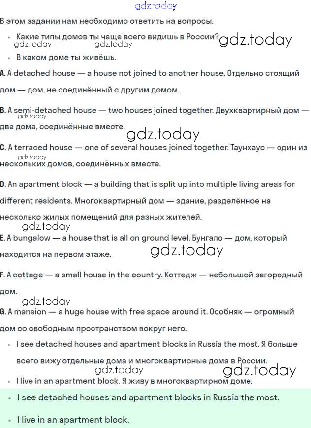 На страницах сайта gdz.today вы найдете учебный и вспомогательный материал, направленный на улучшения знаний школьной программы. ГДЗ - онлайн мир знаний Решение к Unit 11. Homes and houses Часть 2 8 Учебнику по Английскому языку для 6 класса Вербицкая, Гаярделли Вентана-граф Forward 2017