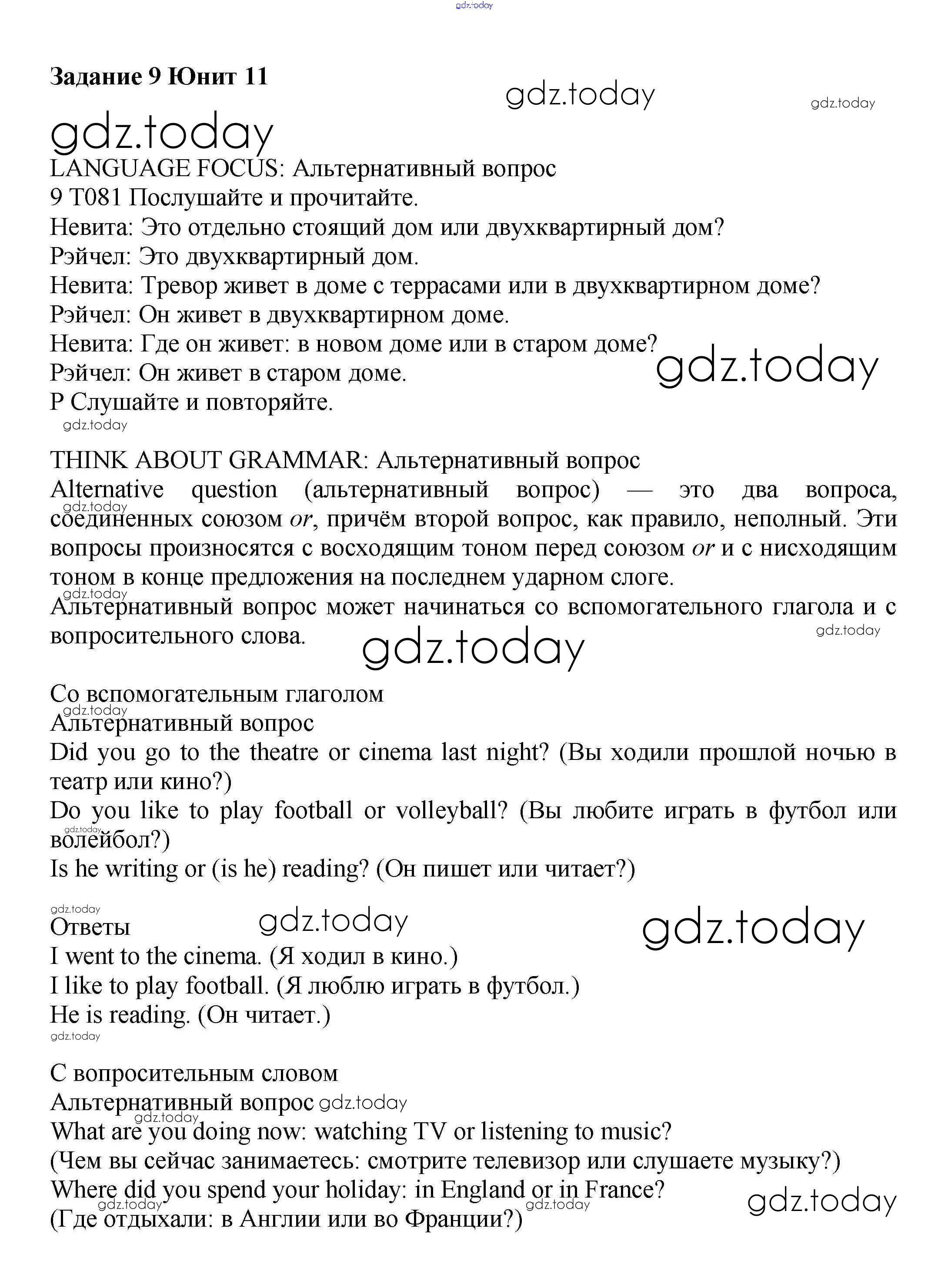 На страницах сайта gdz.today вы найдете учебный и вспомогательный материал, направленный на улучшения знаний школьной программы. ГДЗ - онлайн мир знаний Решение к Unit 11. Homes and houses Часть 2 9 Учебнику по Английскому языку для 6 класса Вербицкая, Гаярделли Вентана-граф Forward 2017