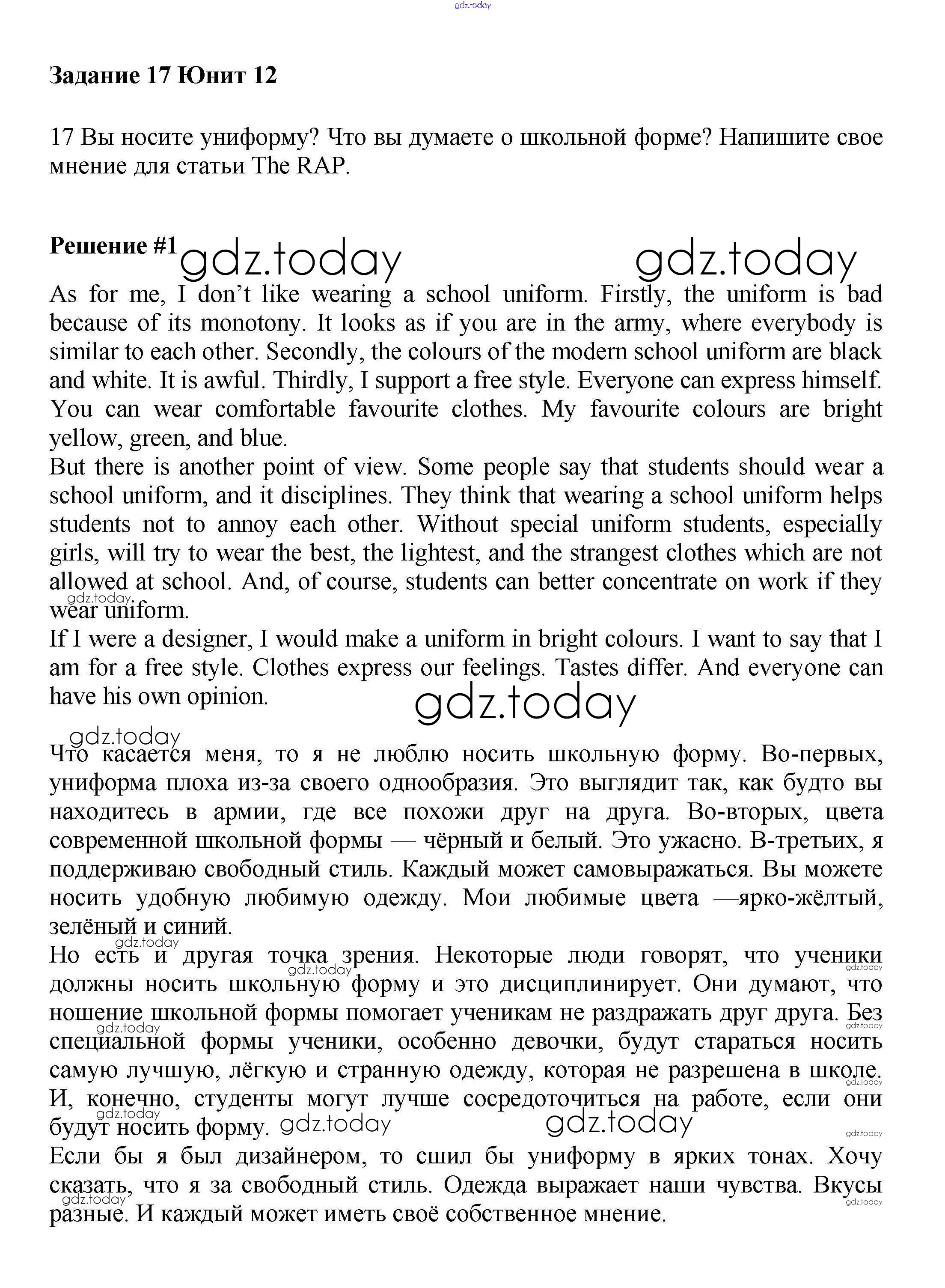 На страницах сайта gdz.today вы найдете учебный и вспомогательный материал, направленный на улучшения знаний школьной программы. ГДЗ - онлайн мир знаний Решение к Unit 12. Shopping Часть 2 17 Учебнику по Английскому языку для 6 класса Вербицкая, Гаярделли Вентана-граф Forward 2017